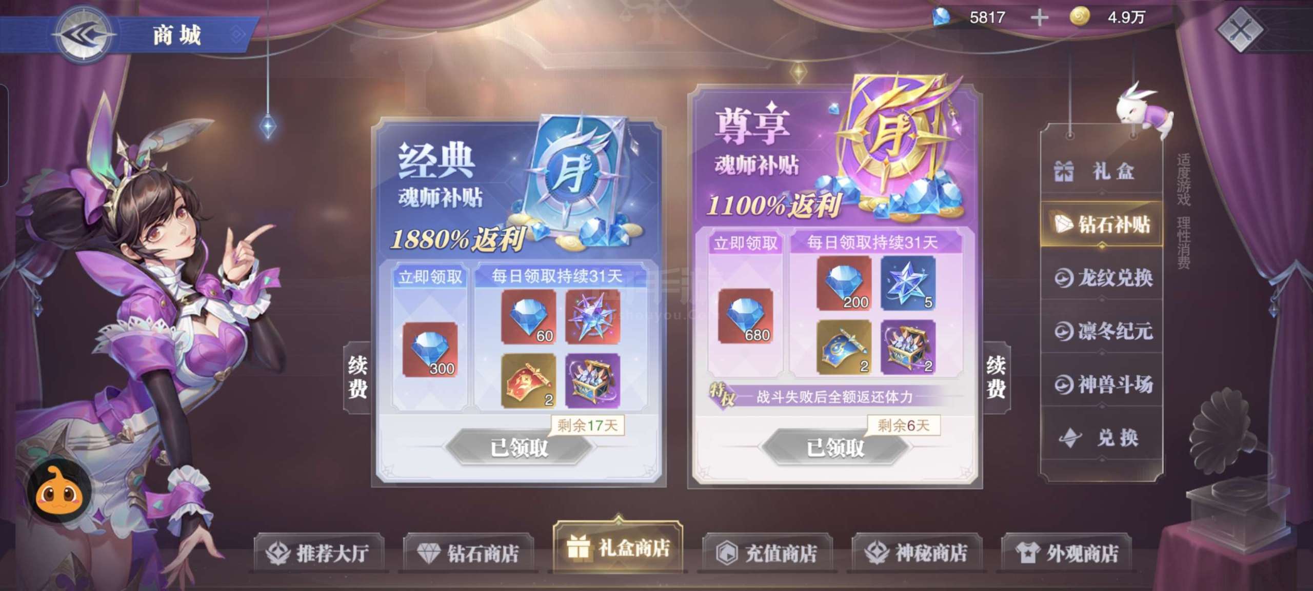 五千钻四百券,4sp魂灵5sp本源2sp战魂导4职业铠甲1共鸣3器王3神魄神骨,霍带简骨10级神位