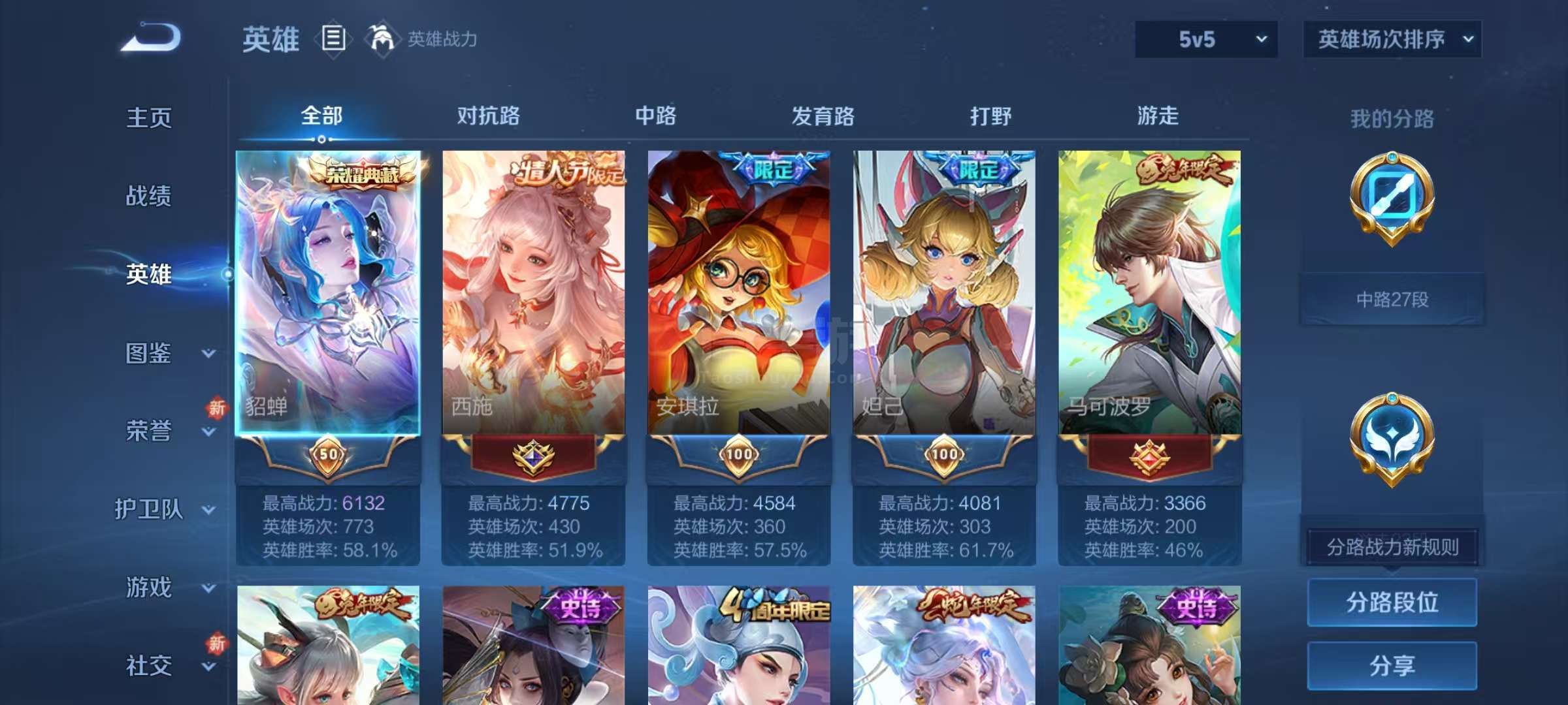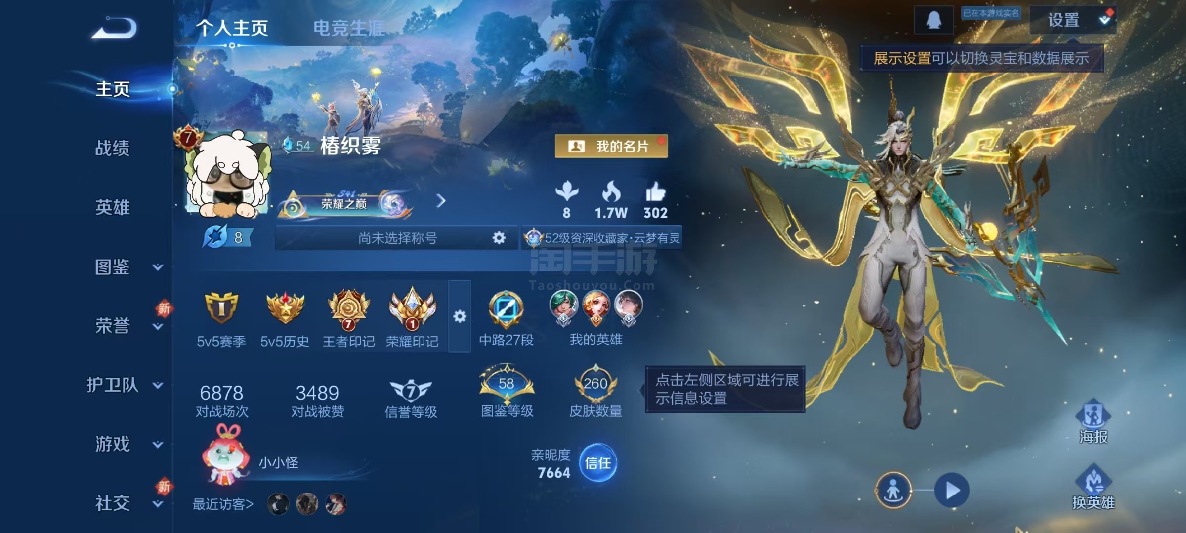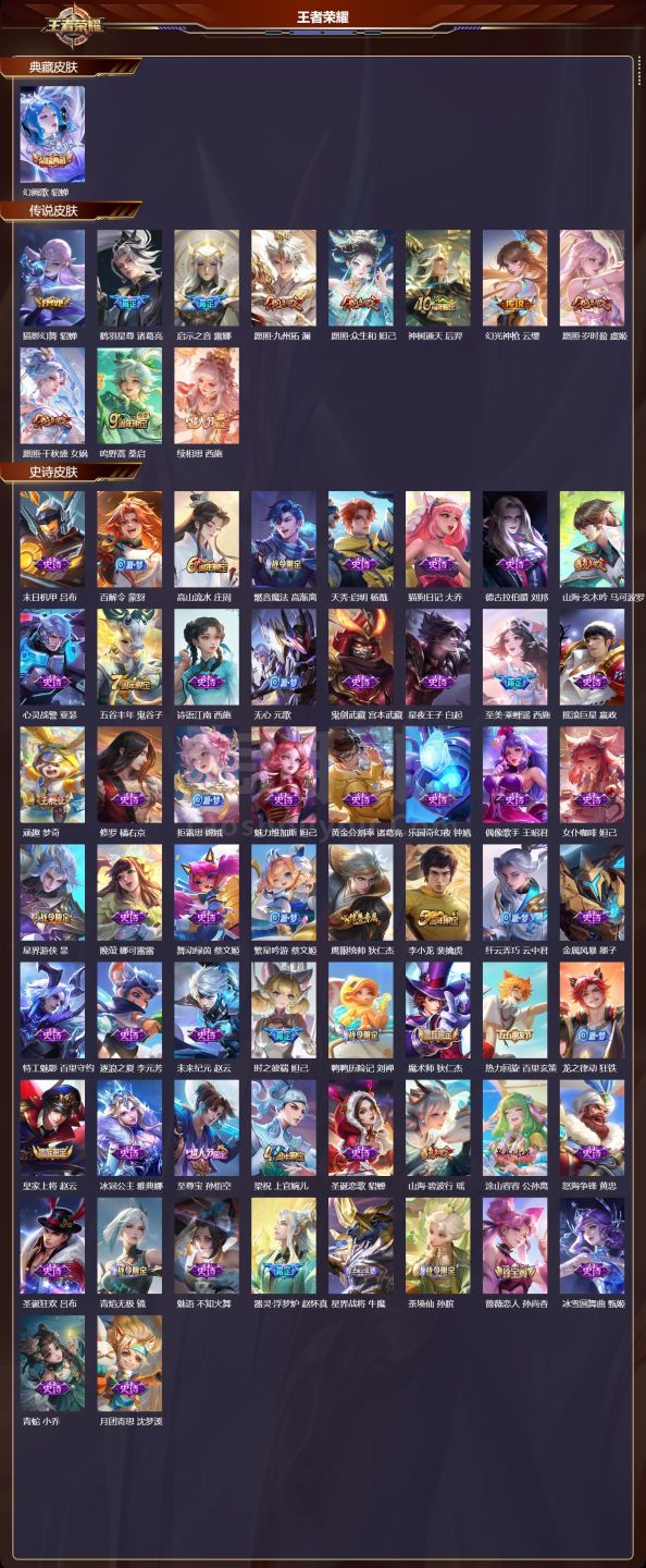 安卓QQ/至尊星耀/260皮肤/126英雄/1典藏/0珍品无双/0无双/0珍品传说/11传说/78史