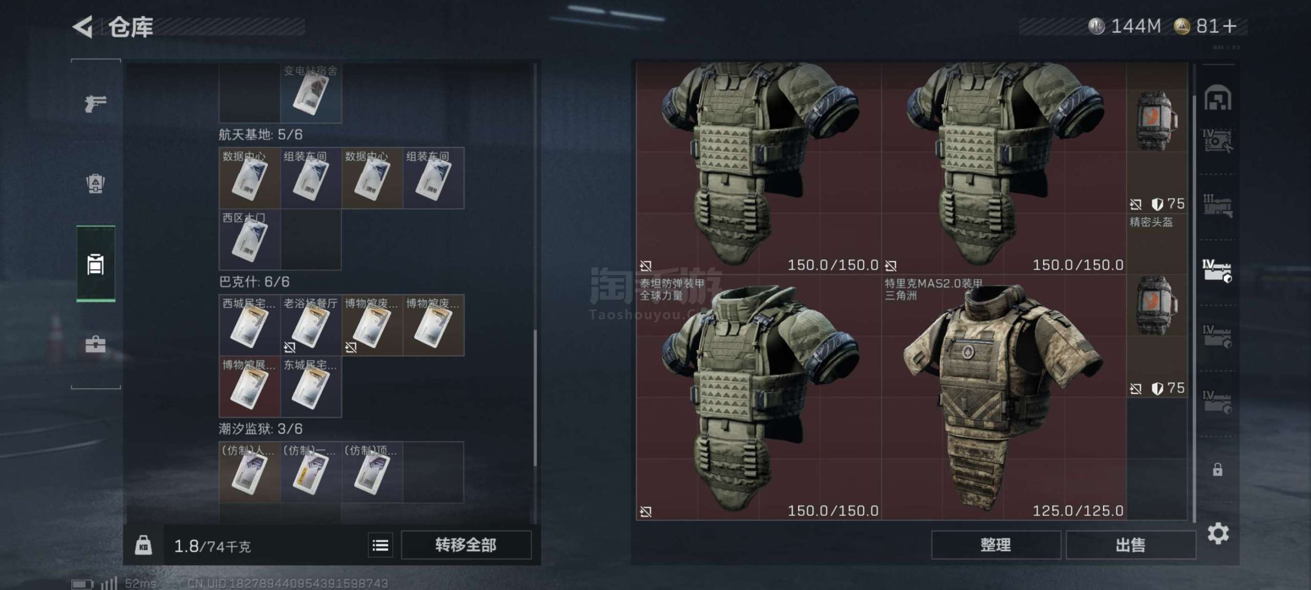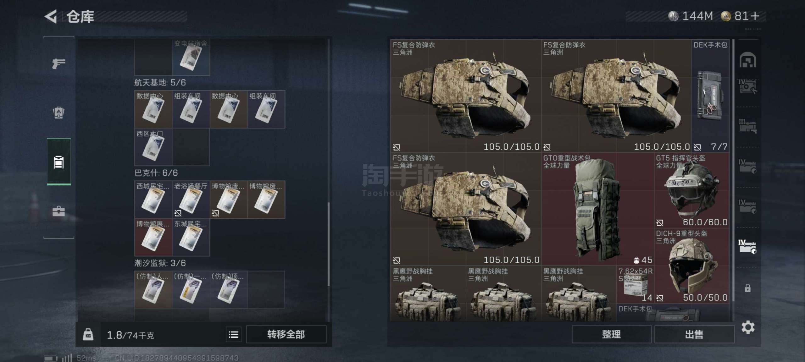 235m仓库 144m纯币 2x3保险 蜂医盾狗双金皮 通行证解锁 可二次