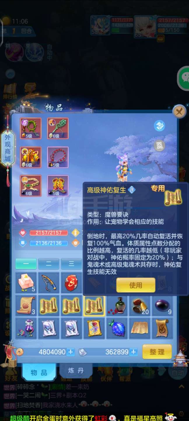 各种高级双技能护符,神兽丹,36万银,仓库还有好多高级书