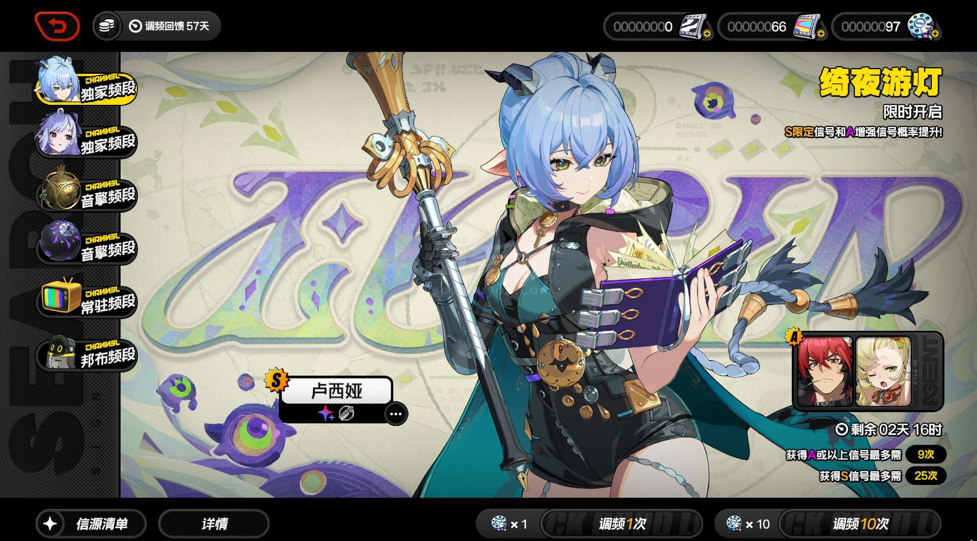 加密母带97抽,角色池大保底已垫65抽,调频回馈140抽