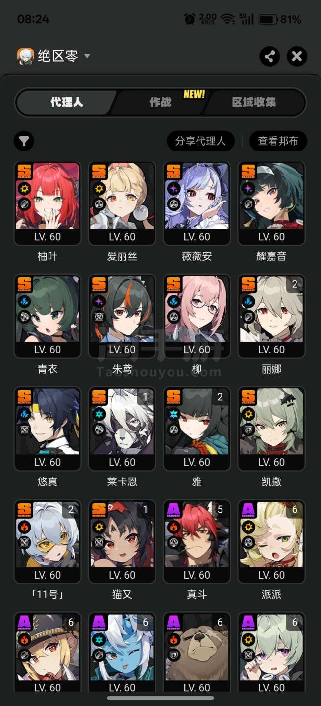 绝区零【安卓官方】60级,男主,33黄(2+1雅),加密母带85抽,邦布卷162抽,大保底已垫65抽,调频回馈140抽