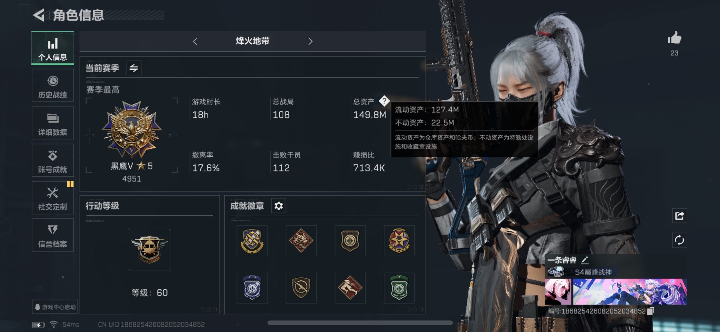 【中额资产号152M+红皮水墨云图】【Q区三端互通】【可二次】YXz385-特勤处:仓库7级/训练中心6级/靶场6级-总资149m-哈夫币885w-烽火等级:60级【勾选了部分账号,详细看图,平台认证商家店铺,保证金商家,安全有保障,性价比超高,永久包赔】