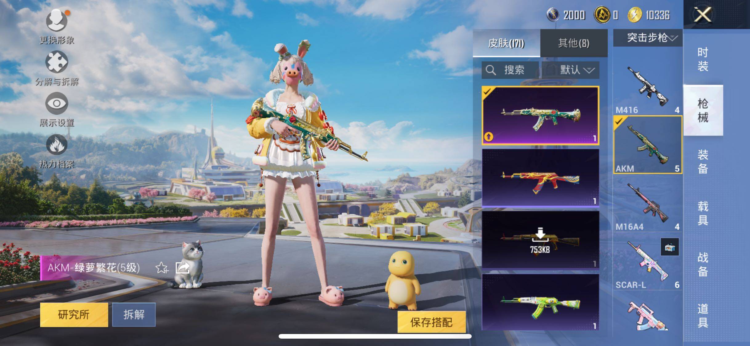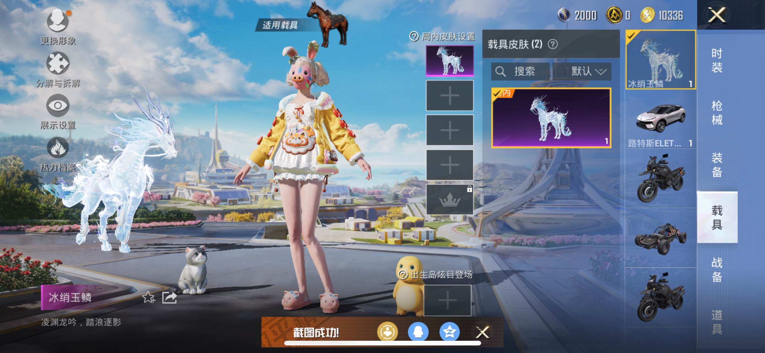 【2载具】 路特斯EL灰色 冰绡玉鳞 【1稀有】 浪漫天命 【12粉装】 猪猪侠 暖暖奶龙 千金淑猫 镜光幻境 缤纷油彩 放客神游 冰川幽秘 暖熊萌萌 冰川红玫 薄荷物语 彩虹鹿灵 寒光使者 【4特效枪】 AKM-绿萝繁花 (5级) K