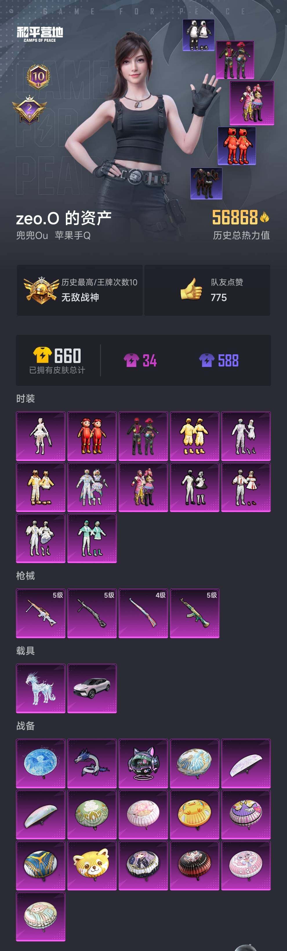 【战神框 猪妹 放客 番茄 胖达 哥特】【可二次】YXc14588 苹果Q 10王牌印记 历史无敌战神 137套装 171枪皮【因赛季更新游戏段付以上号为准!】
