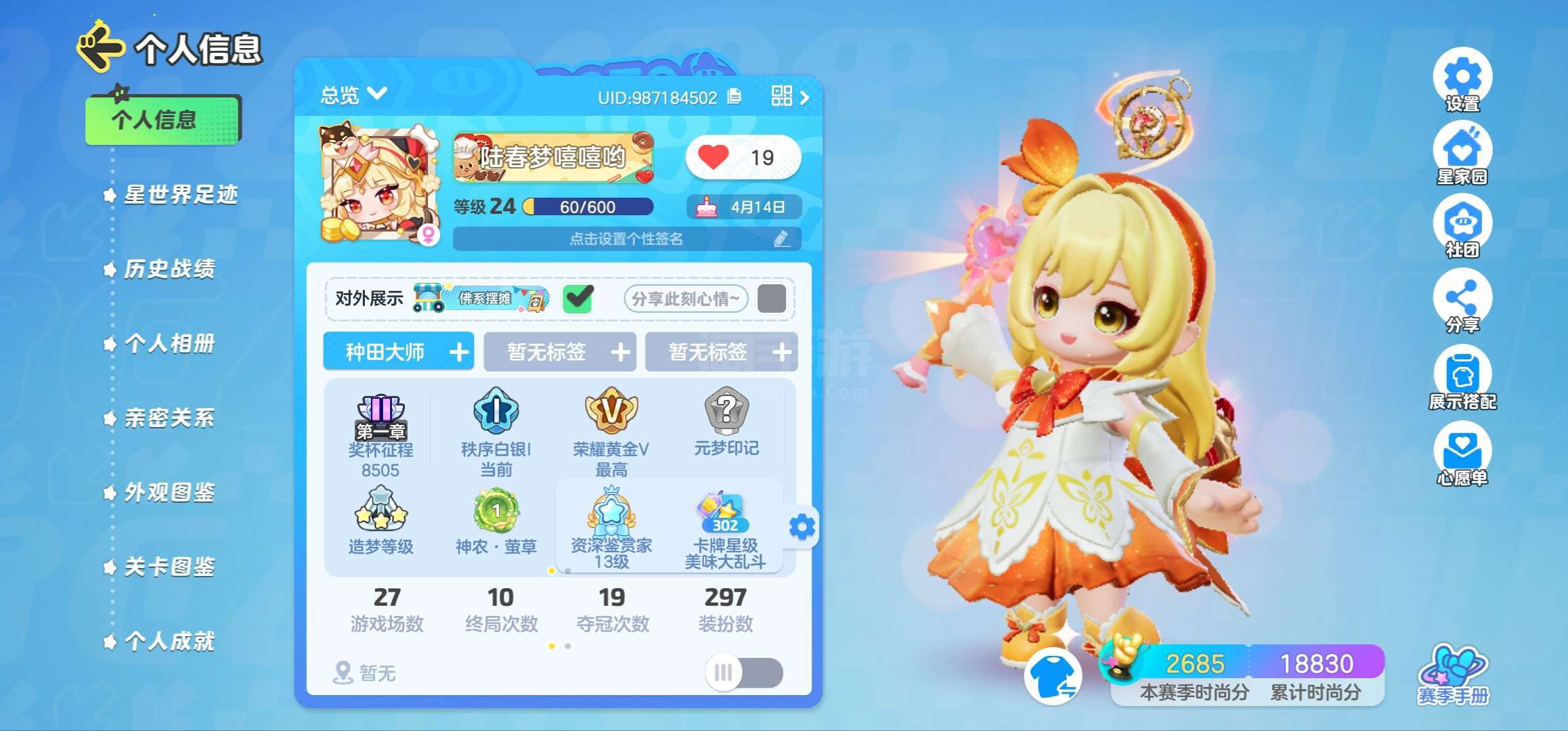 皮肤有巴啦啦魔仙小蓝,仓库还有猴猴钱包500根左右,没出前会一直养号。