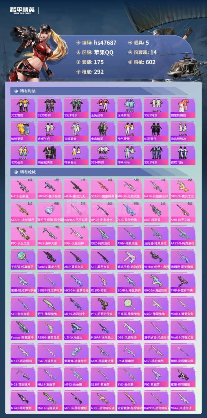 hs47687 苹果手Q-17王牌印记-有战神框-1红装-14粉装-17特效枪-5载具-110059