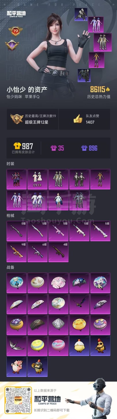 hs47704 苹果手Q-19王牌印记-9粉装-8特效枪-86155热力值-204套装-274枪皮-