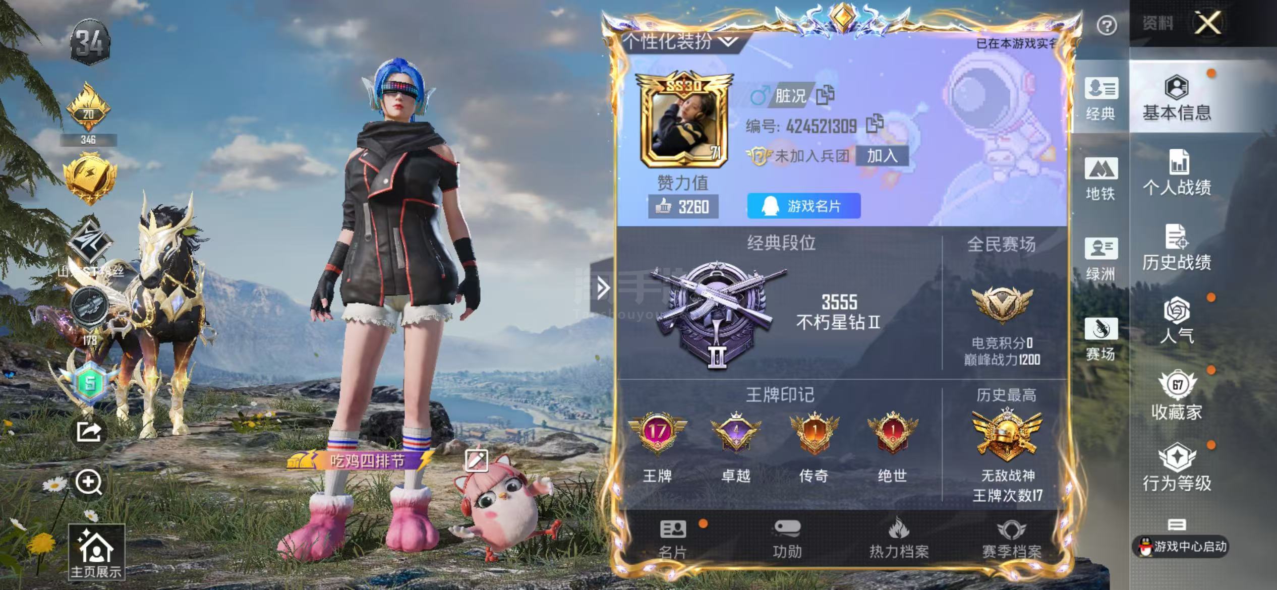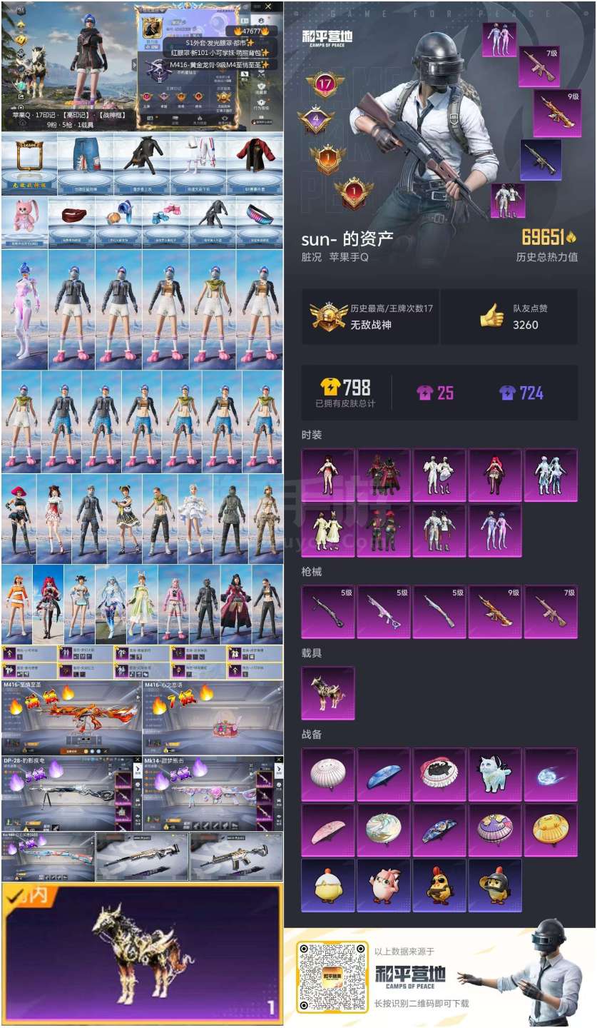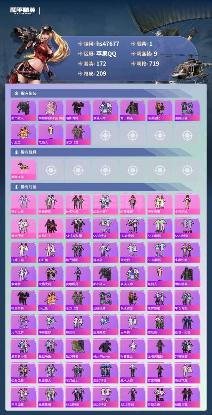 hs47677 苹果手Q-17王牌印记-有战神框-9粉装-5特效枪-1载具-69651热力值-172