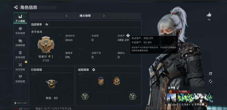 总资产443m 纯币120m+两颗非洲之心+仓库大红很多+水墨云图骇爪全套+s3s4赛季通行证+烽火等级60 特勤部门等级可以+守信不渝 永久包赔