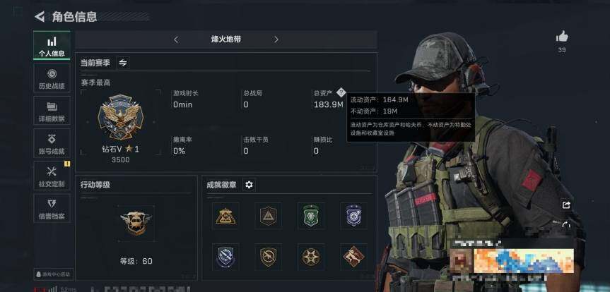 总资产163m 纯币98m+s4赛季3x3安全箱+饰金玫瑰红狼全套+s3s4赛季通行证+烽火等级60 特勤部门等级高 永久包赔
