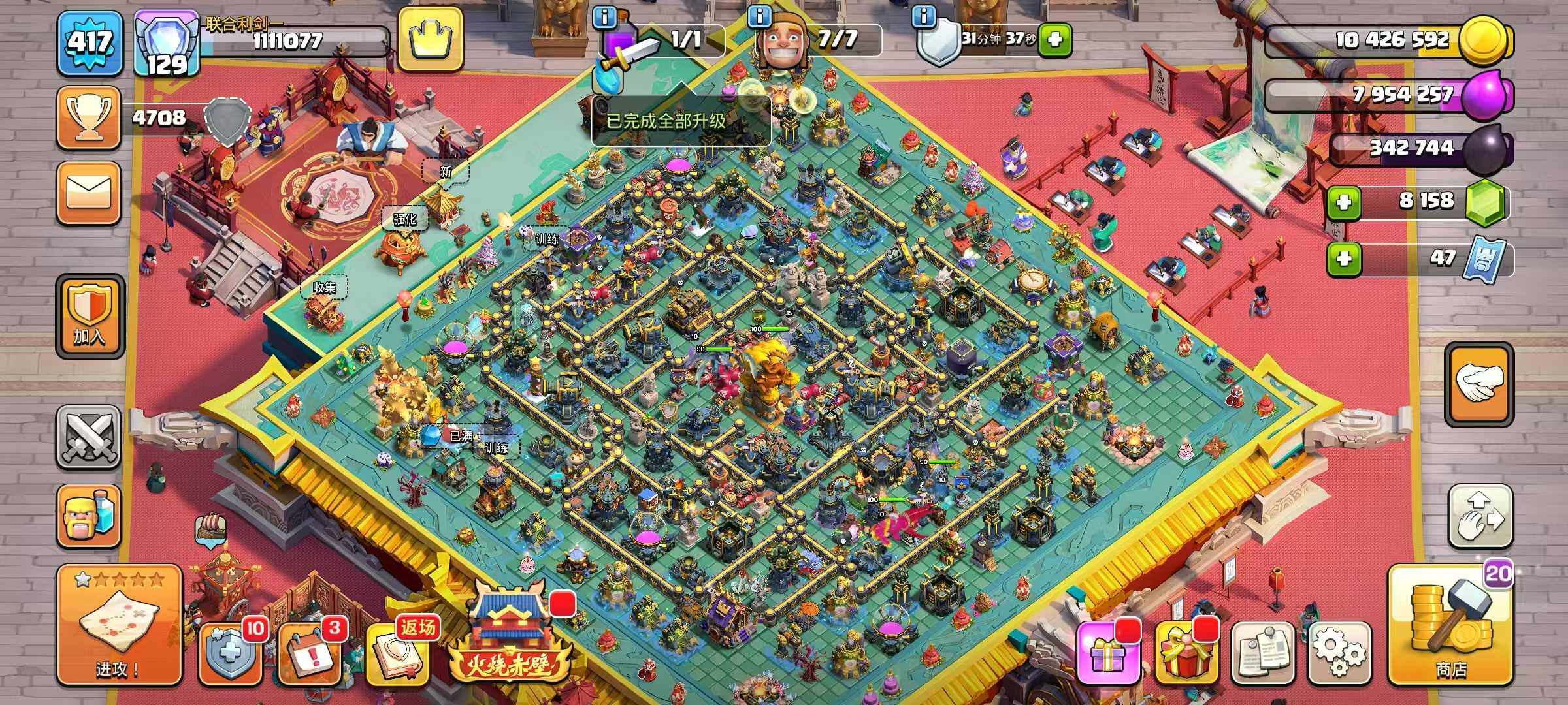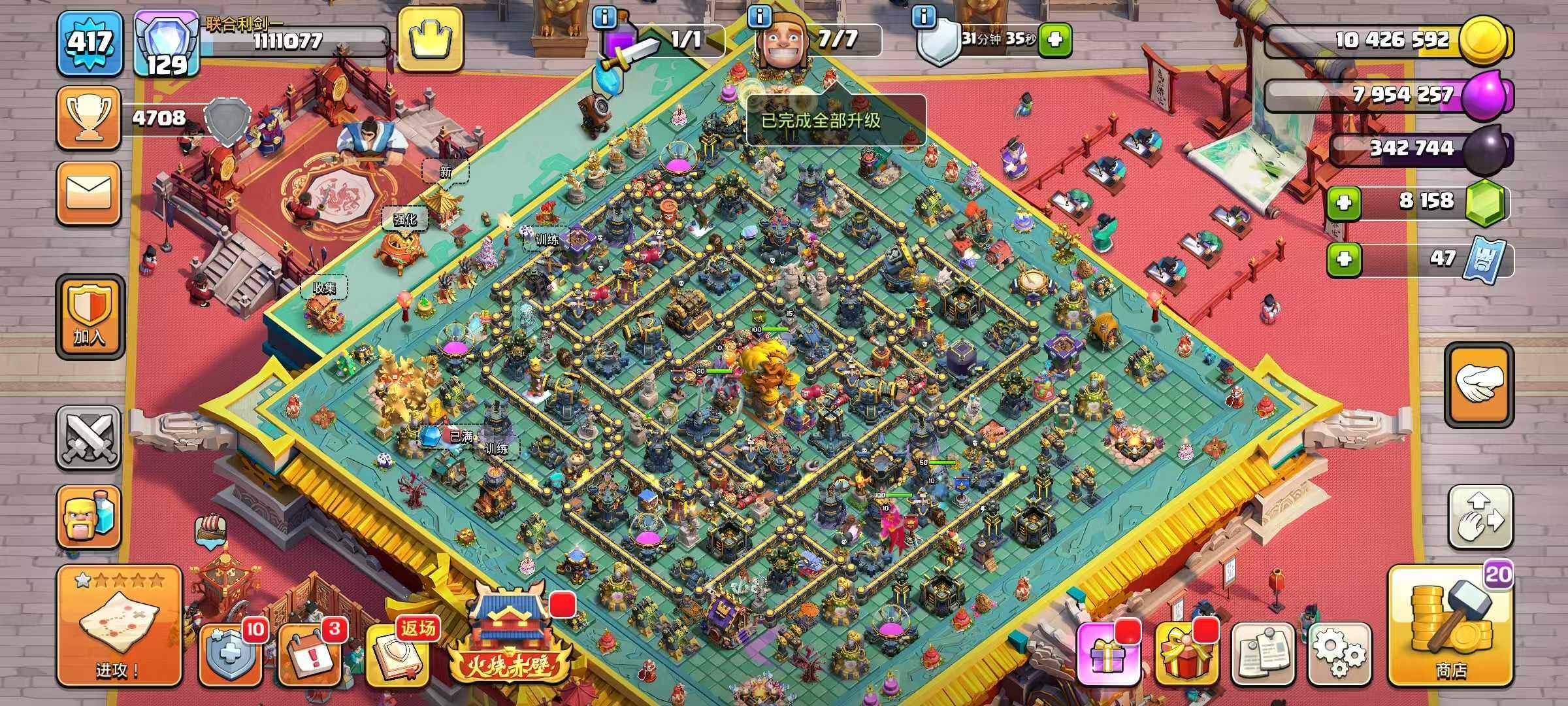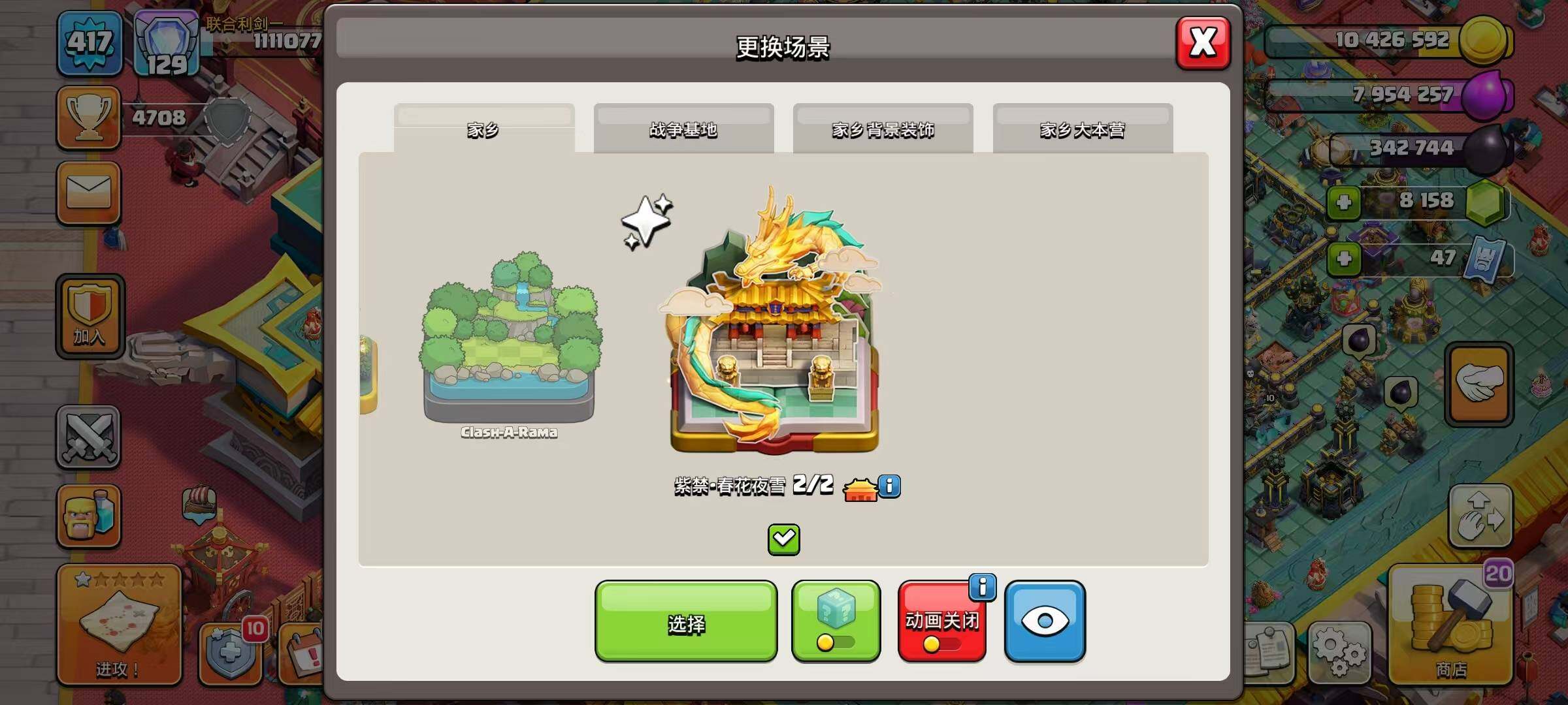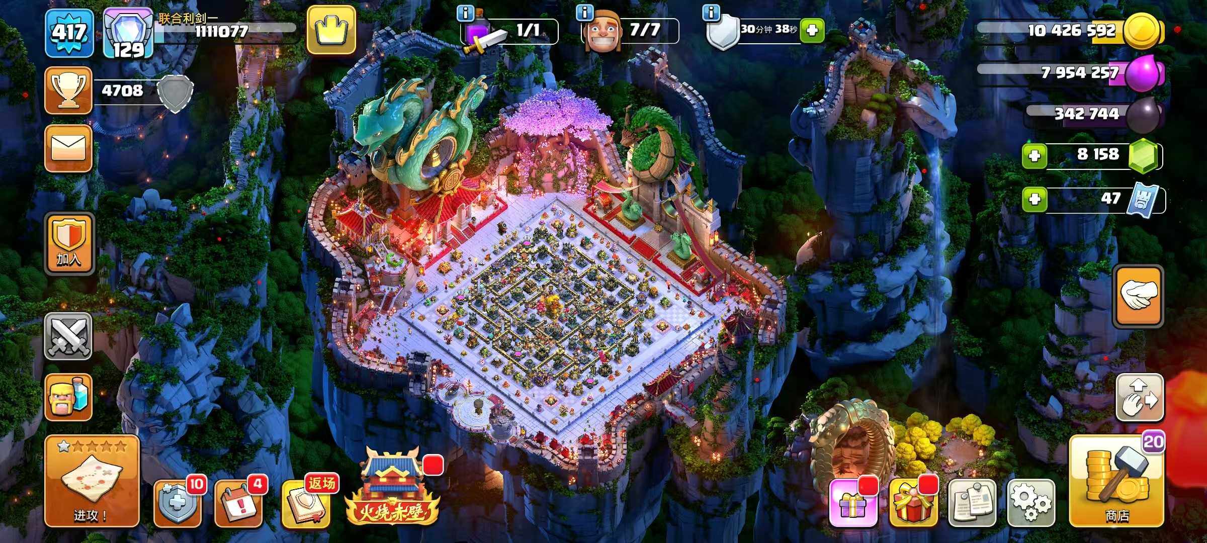 部落冲突【苹果QQ】A1914 主17本满,夜10满,库存多,紫禁场景,称号:紫禁龙腾,紫禁·春
