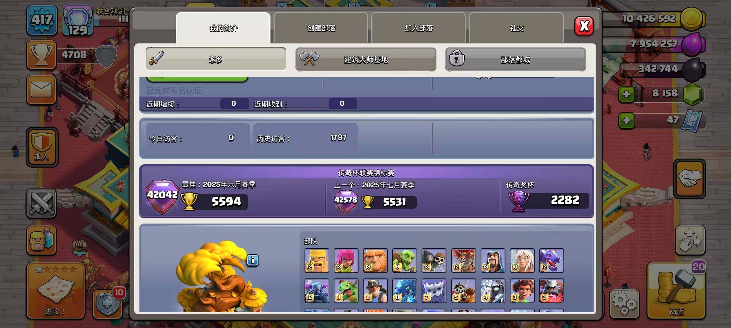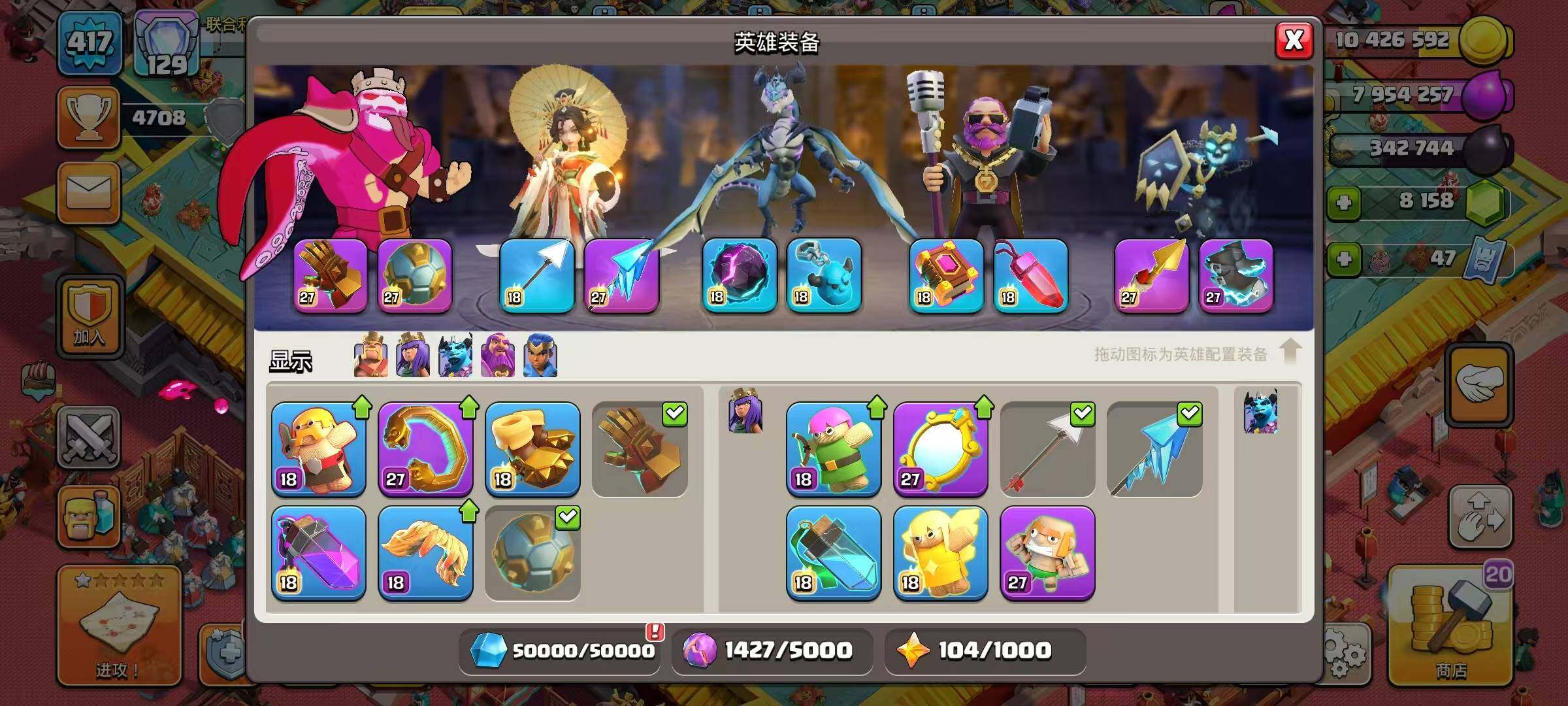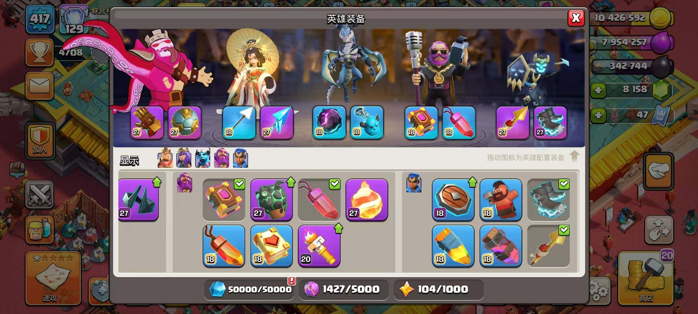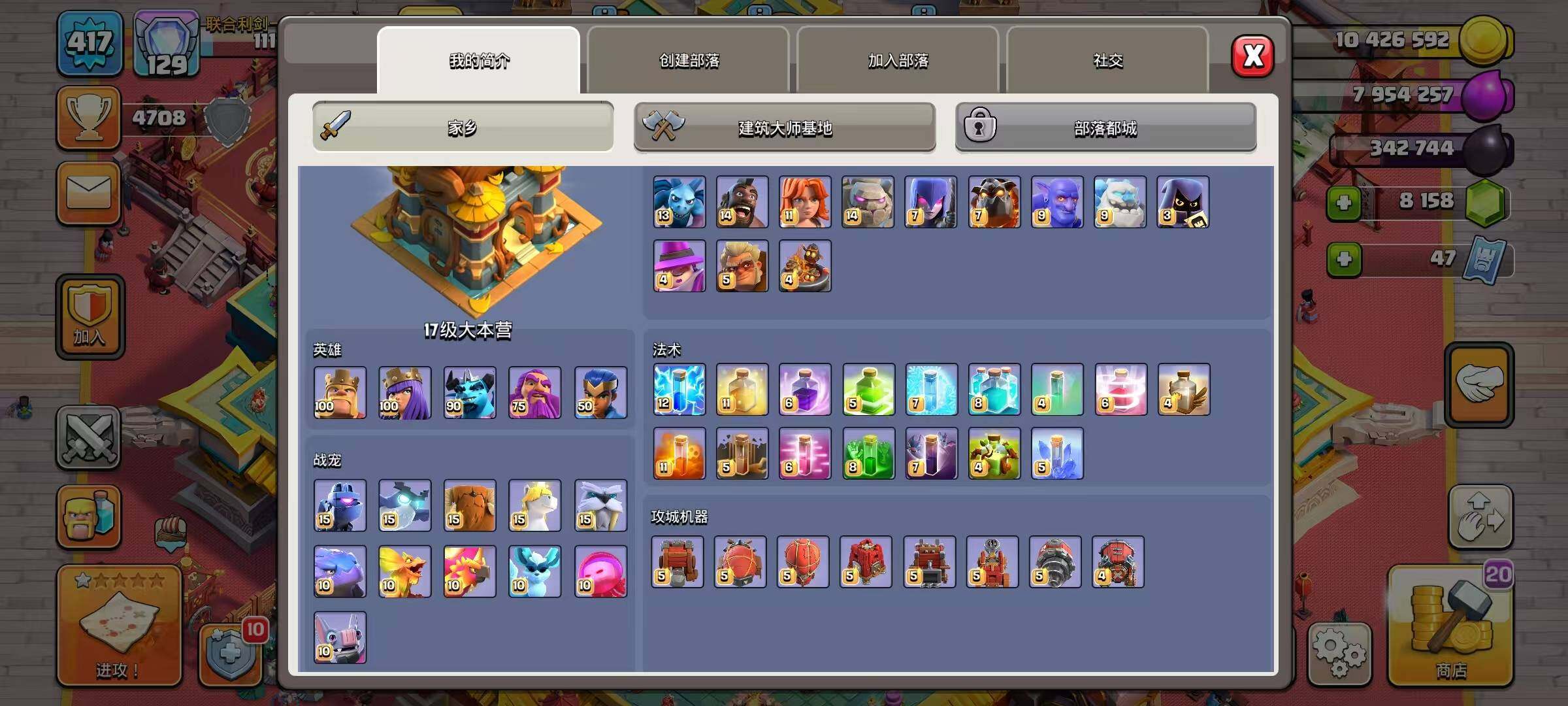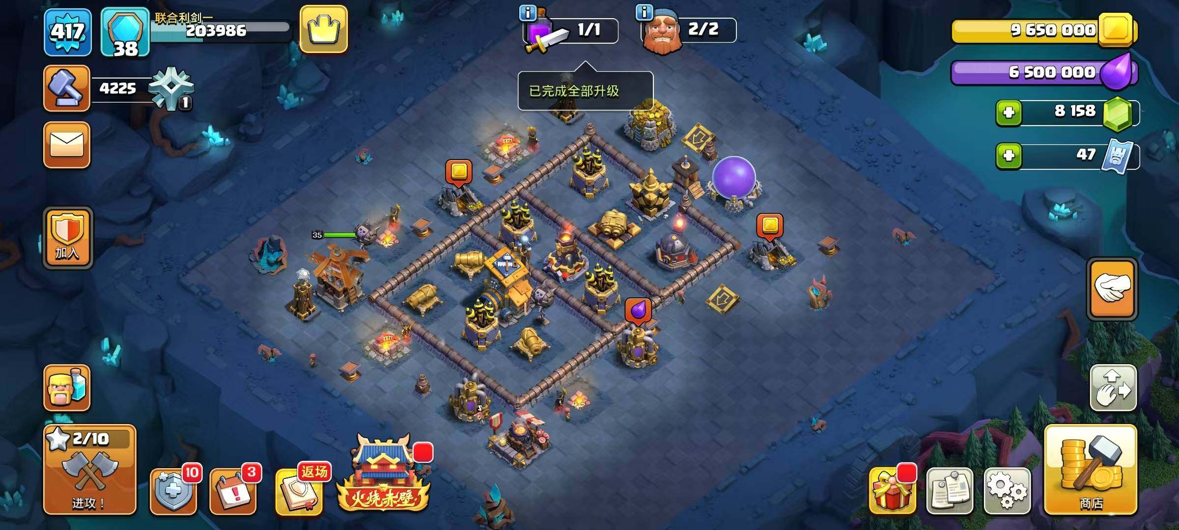 部落冲突【苹果QQ】A1914 主17本满,夜10满,库存多,紫禁场景,称号:紫禁龙腾,紫禁·春