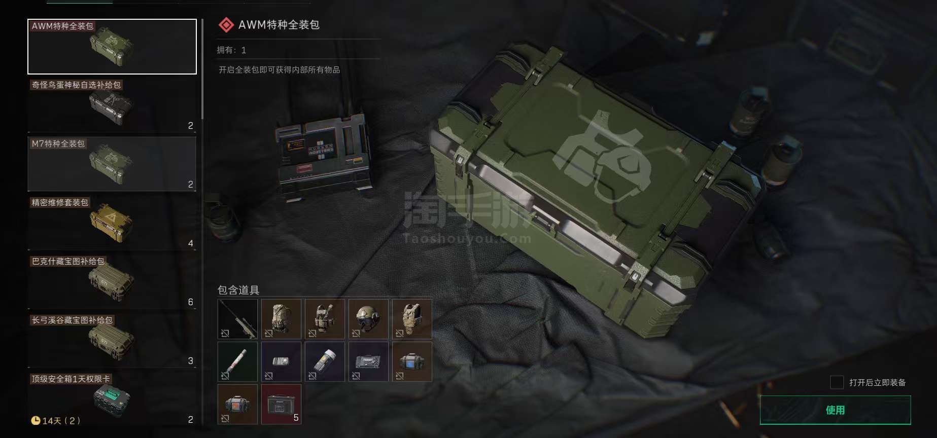 8六甲3六头10aw和aw全装包,有电锯,九格保险18传说枪皮,7体力6负重,暂时改不了实名