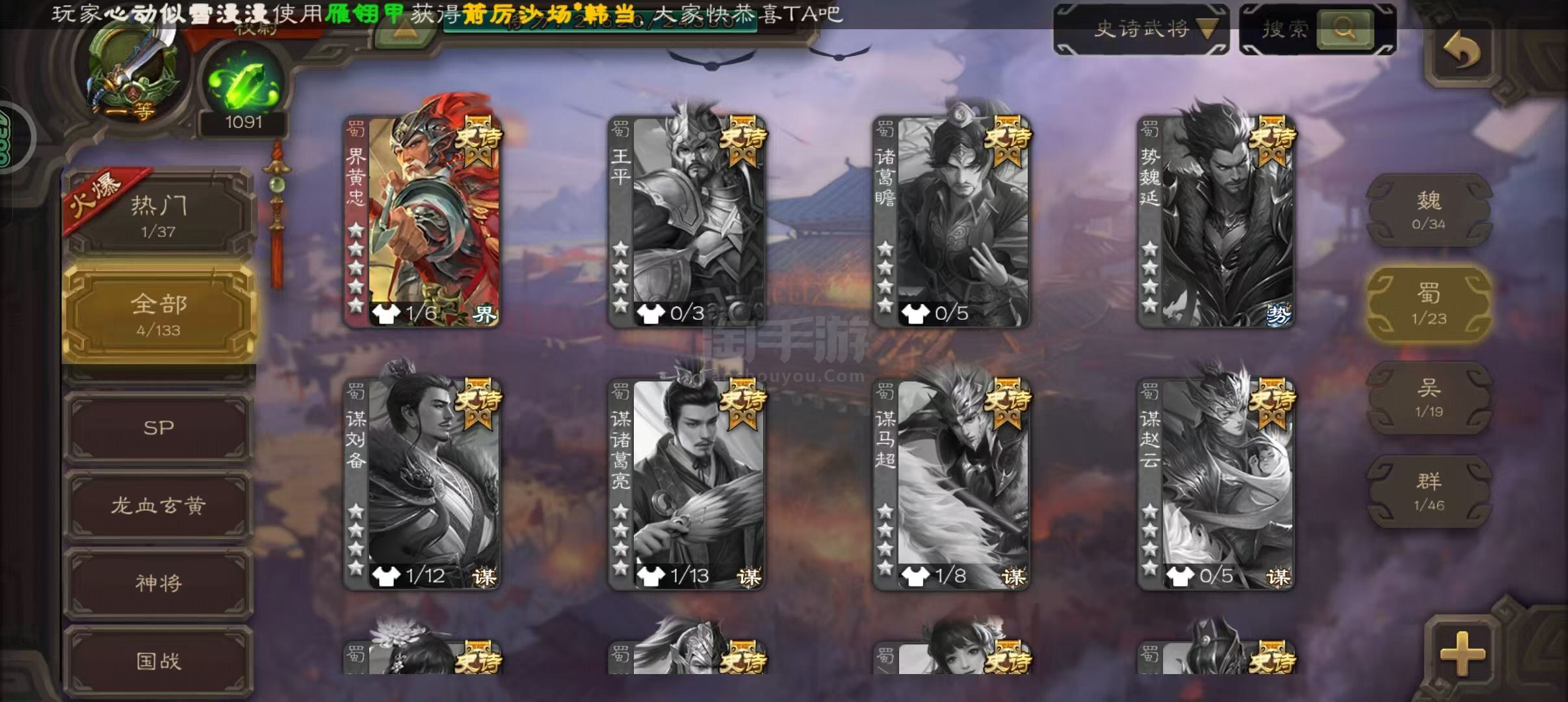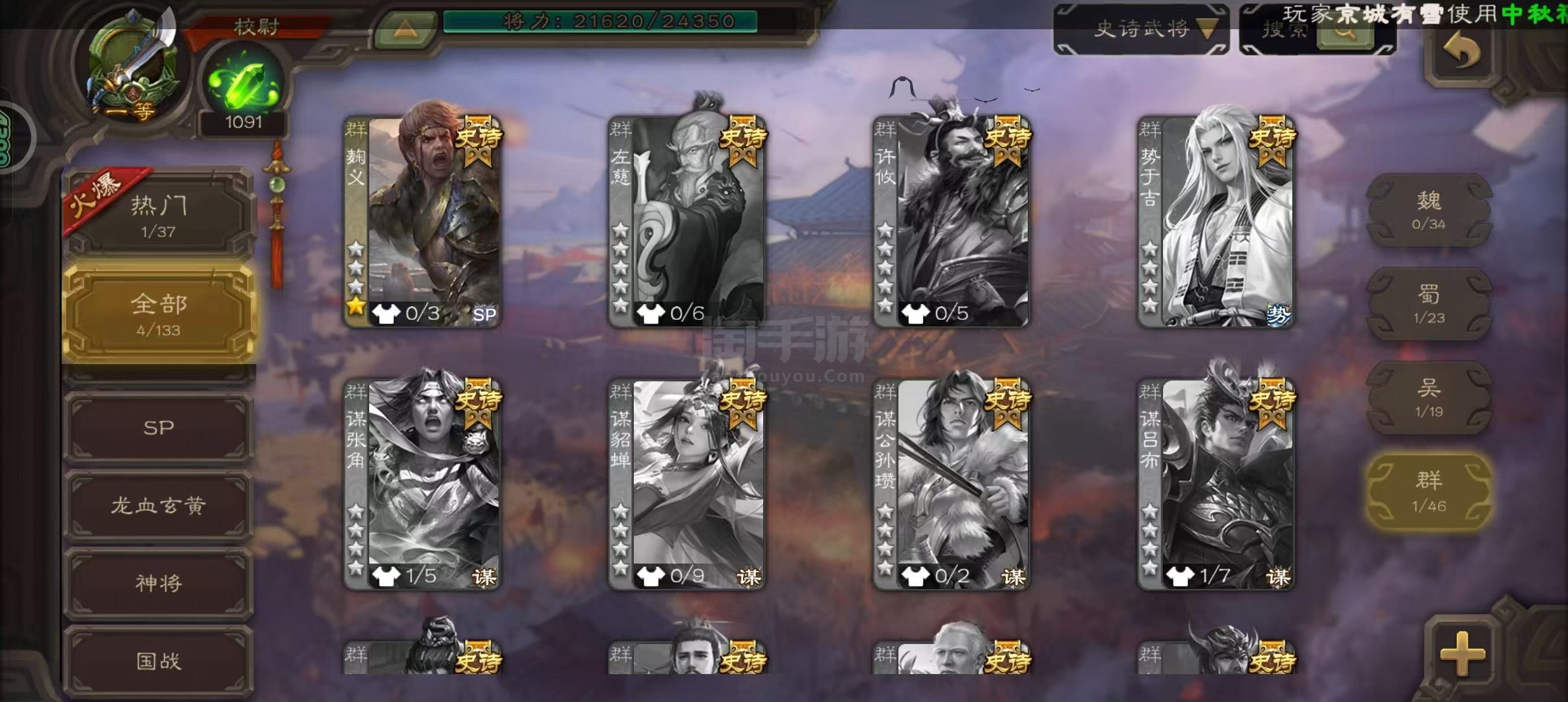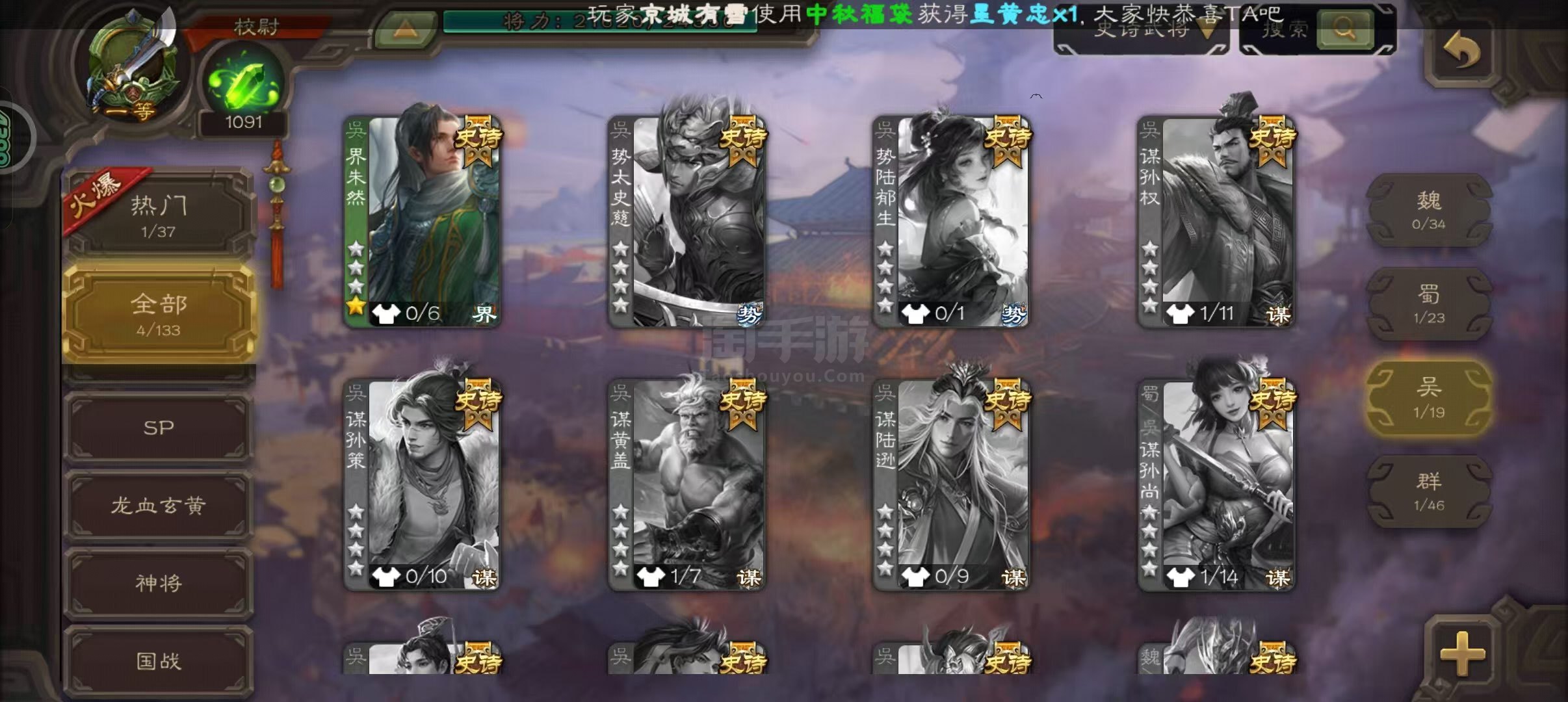 三国杀移动版【安卓官方】4399版本三国杀 神太史慈 星黄忠 界朱然 校尉小号 100出 找回包赔