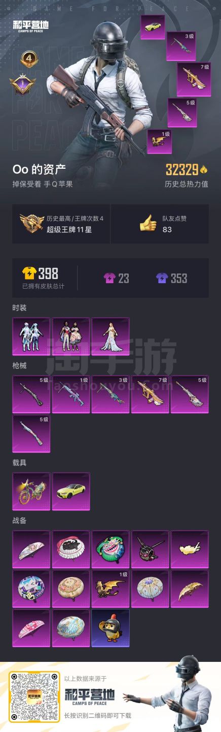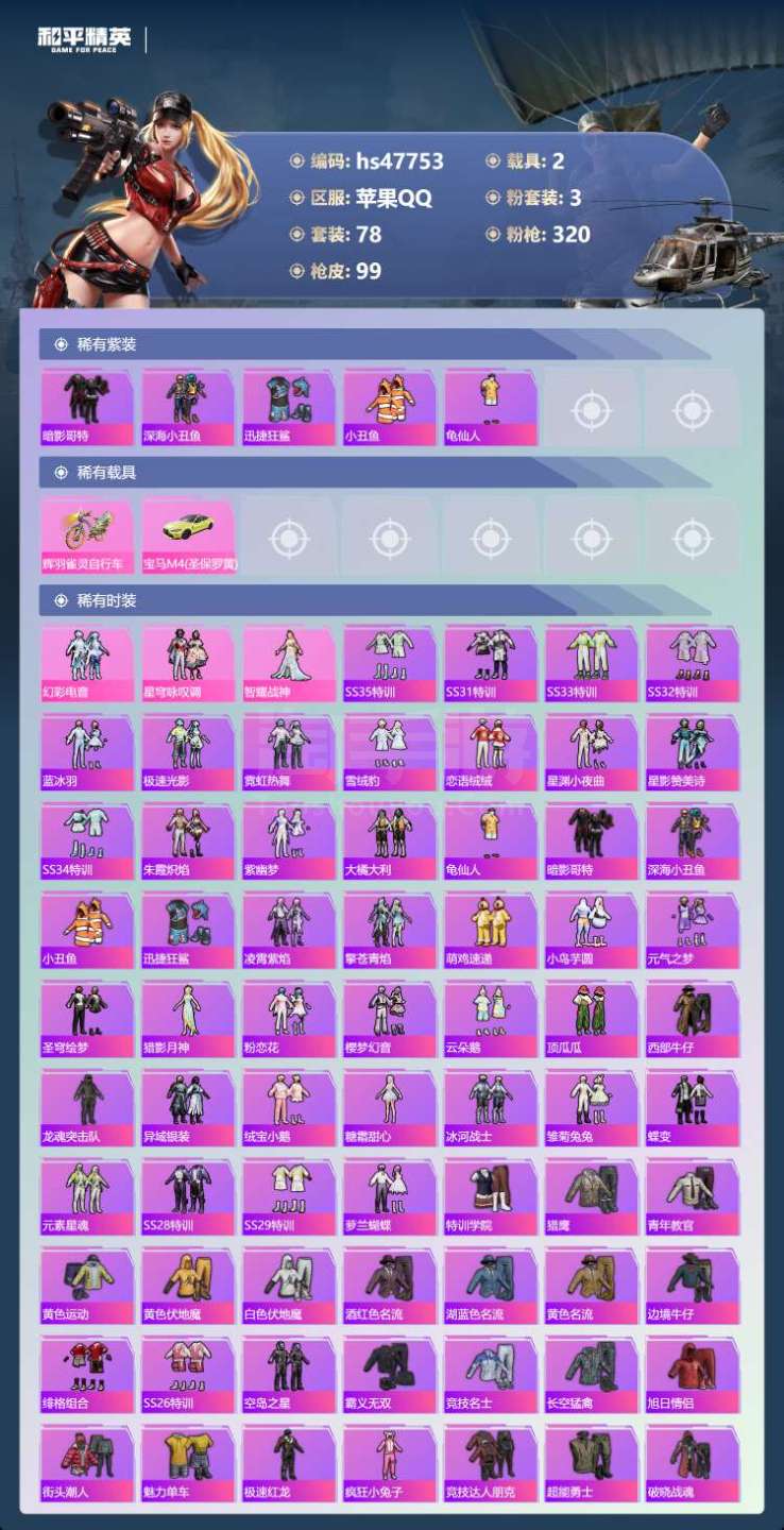 hs47753 苹果手Q-4王牌印记-3粉装-6特效枪-2载具-32329热力值-78套装-99枪皮