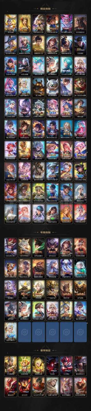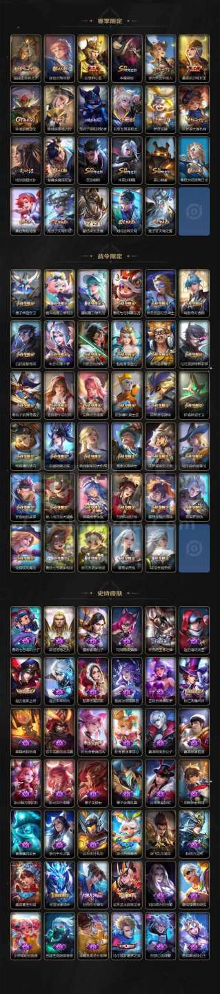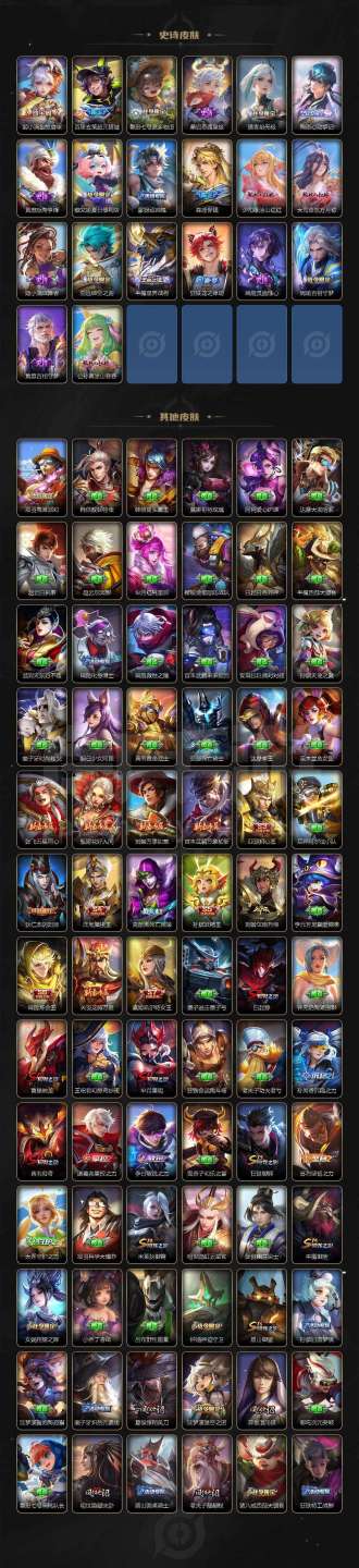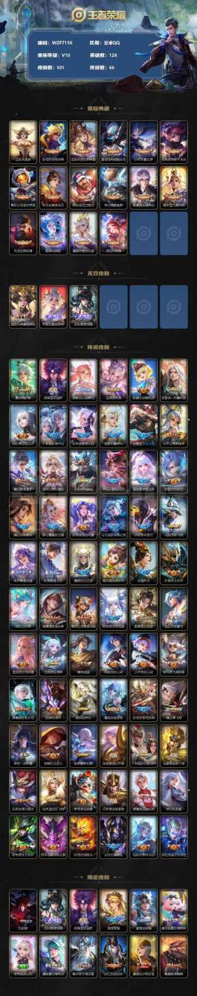 贵族10/皮肤501/典藏15/传说66/史诗164/英雄128/次元傲视/魅语/云械蓝图/无限飓风