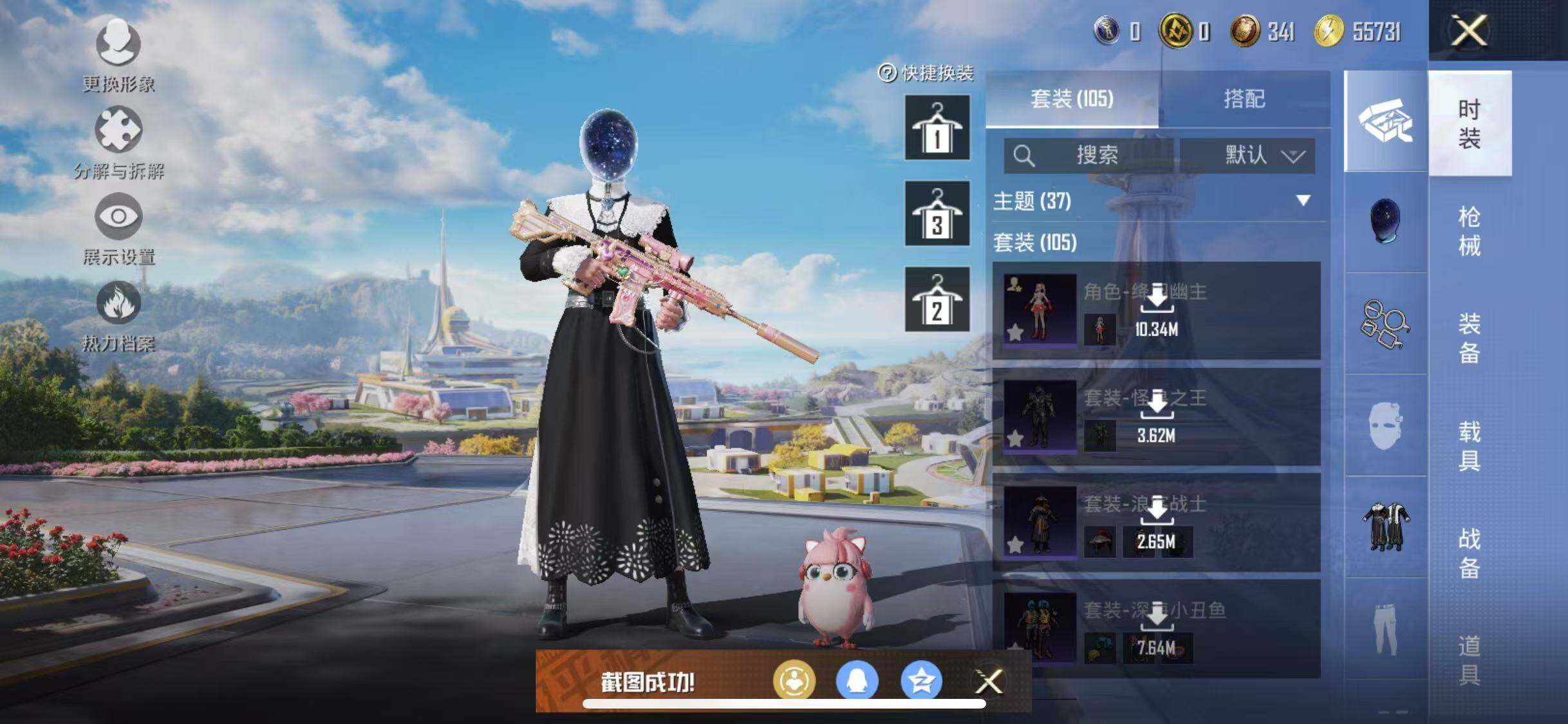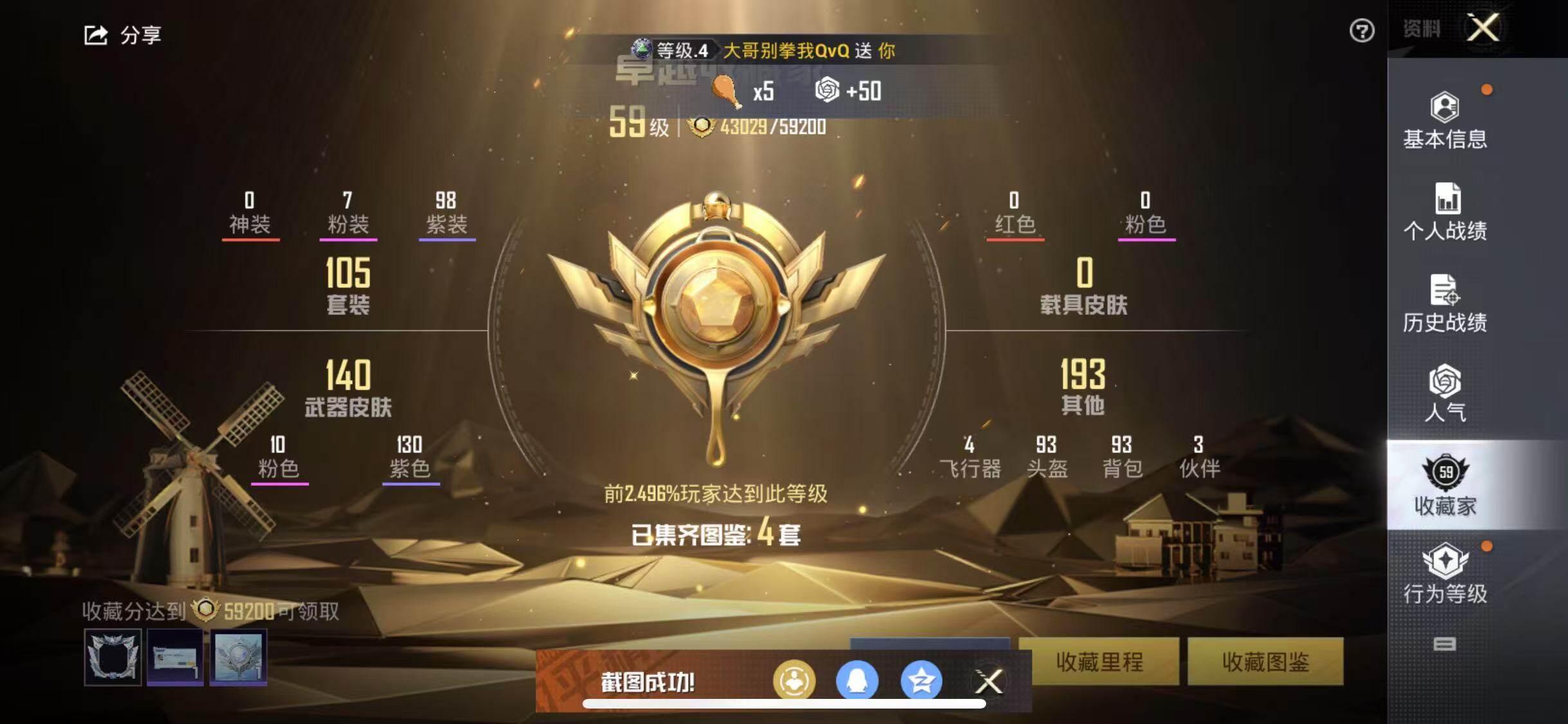 苹果 手Q-7粉装-10特效枪-0载具-2粉色飞行器-52929热力值-6王牌印记-105套装-152枪皮