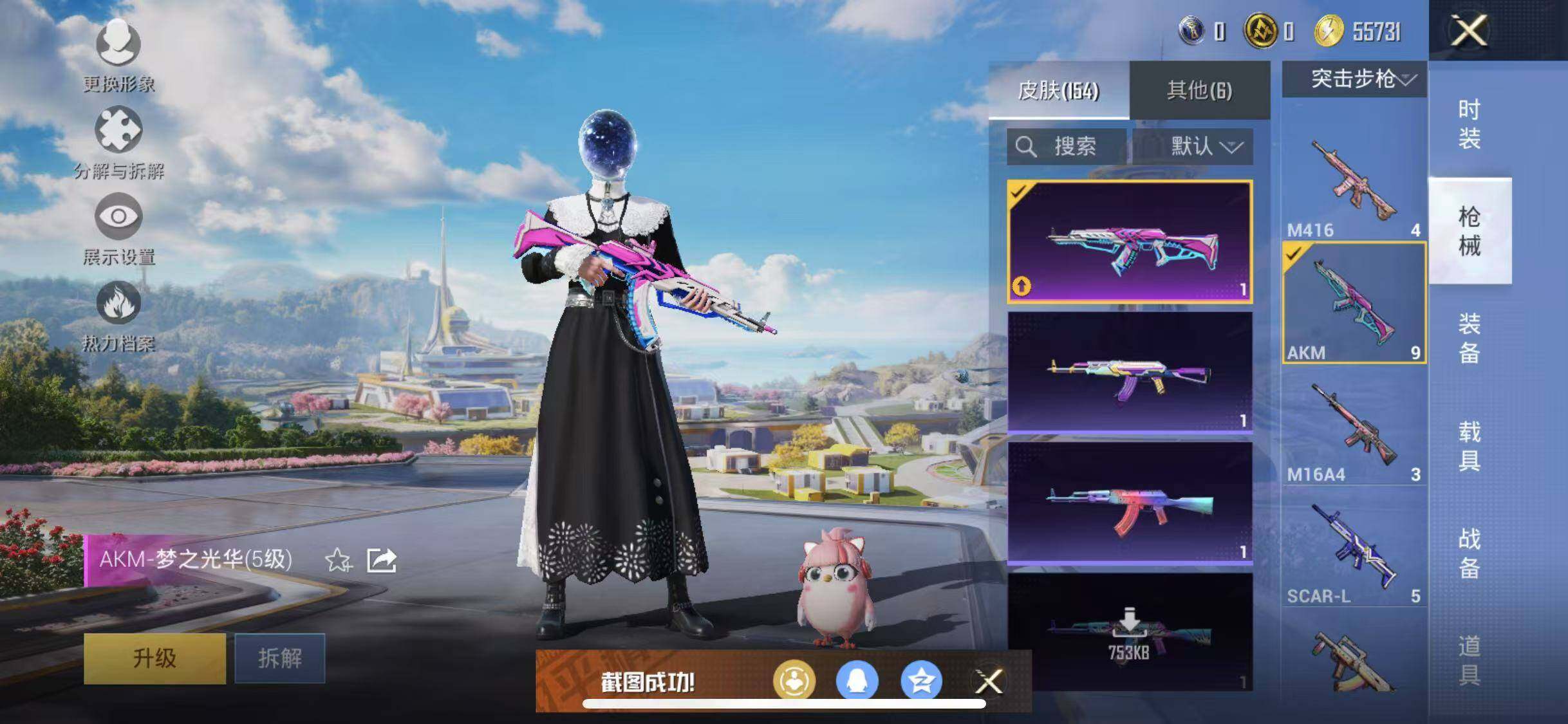 【粉色枪皮等级】:AKM-梦之光华(五级),SCAR-L-青春物语(