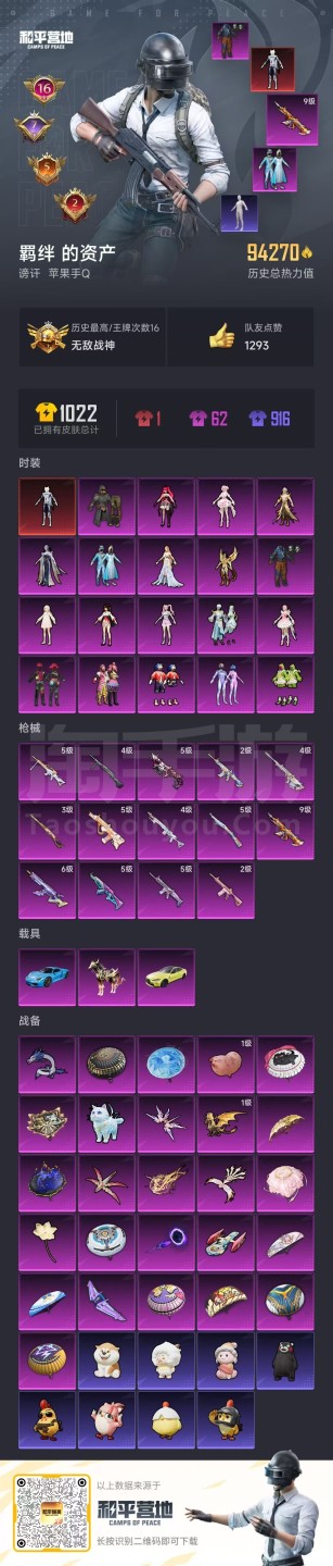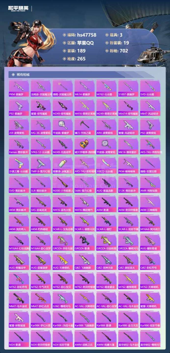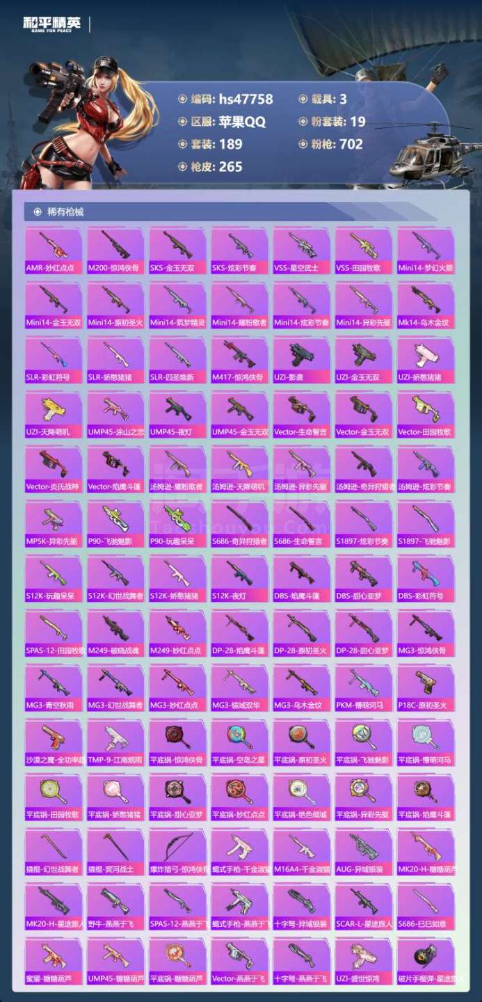hs47758 苹果手Q-16王牌印记-有战神框-1红装-19粉装-14特效枪-3载具-94270热