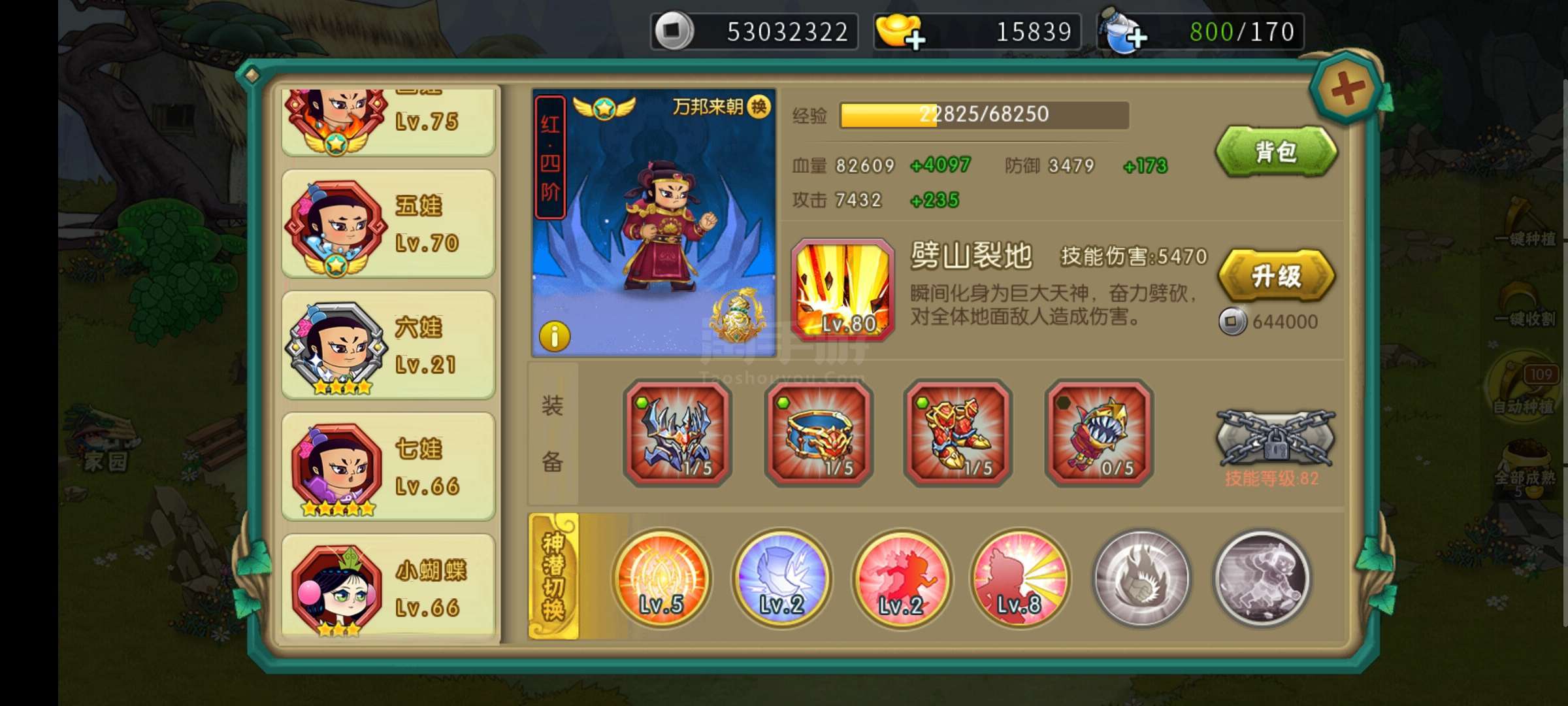 葫芦娃【安卓vivo】V5,元宝15000+,活动里面还有几千没领,有大娃神兽