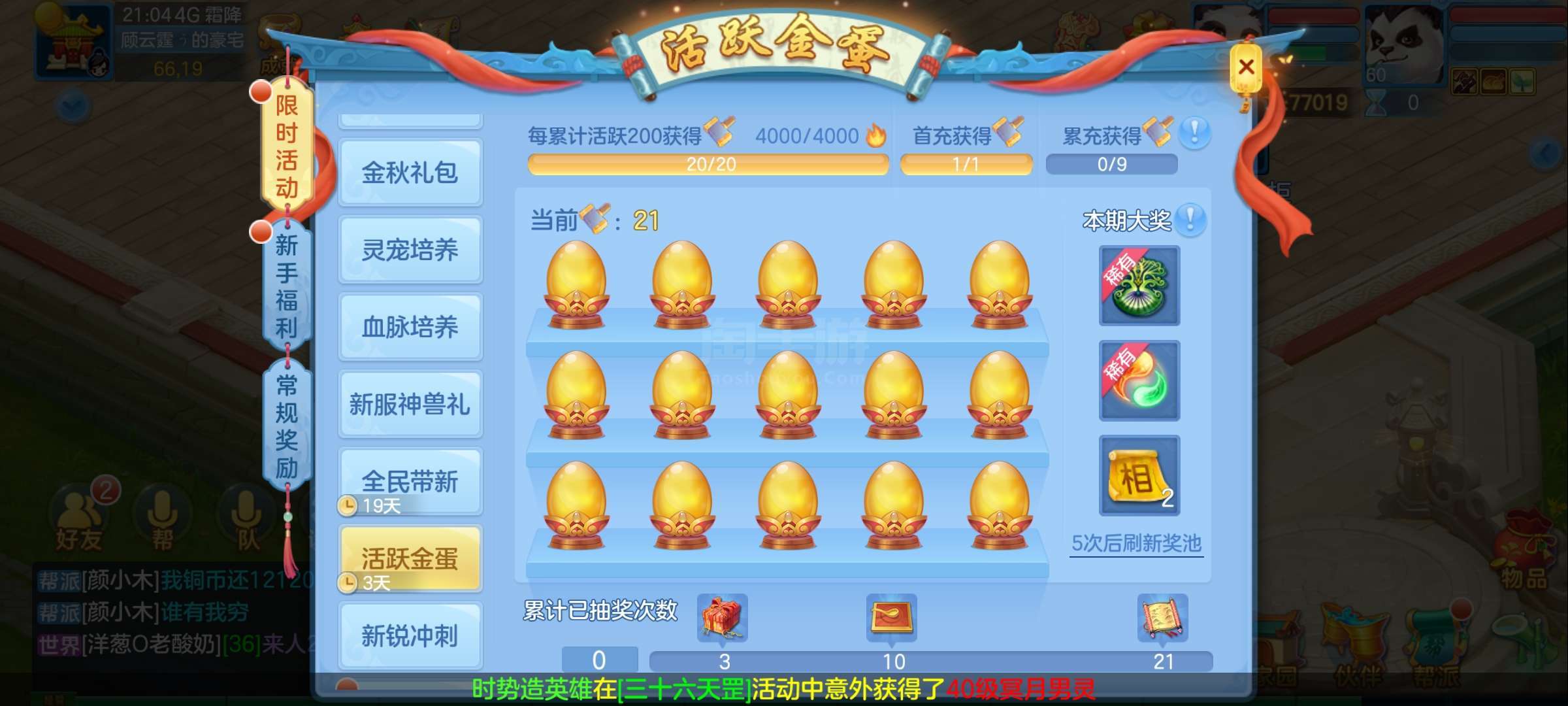 锦绣金秋男魔王首冲月卡叶子号,金蛋未开,萌宠未培养,貔貅币163(126)邮箱三无,战盟可换绑(绑定