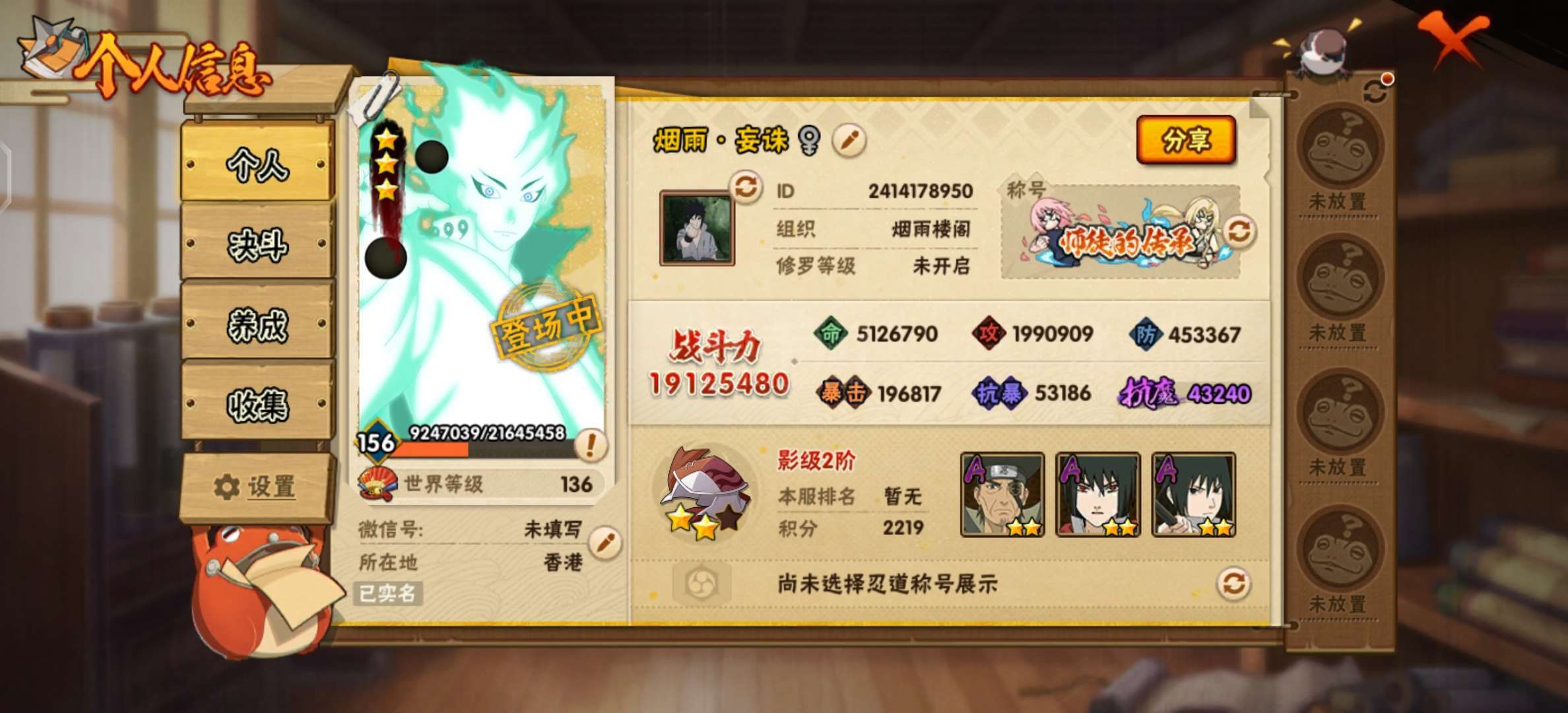 火影忍者【安卓微信】质量号 34S 46A 有熊猫蛞蝓 组织战区排名第一 连体王者v7差一点点v8