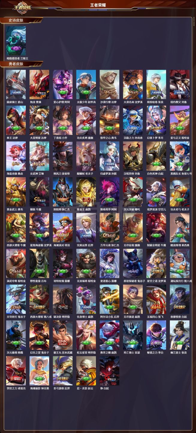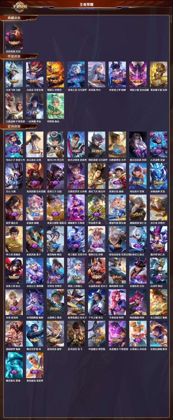 苹果QQ/至尊星耀/224皮肤/127英雄/1典藏/0珍品无双/0无双/0珍品传说/11传说/59史