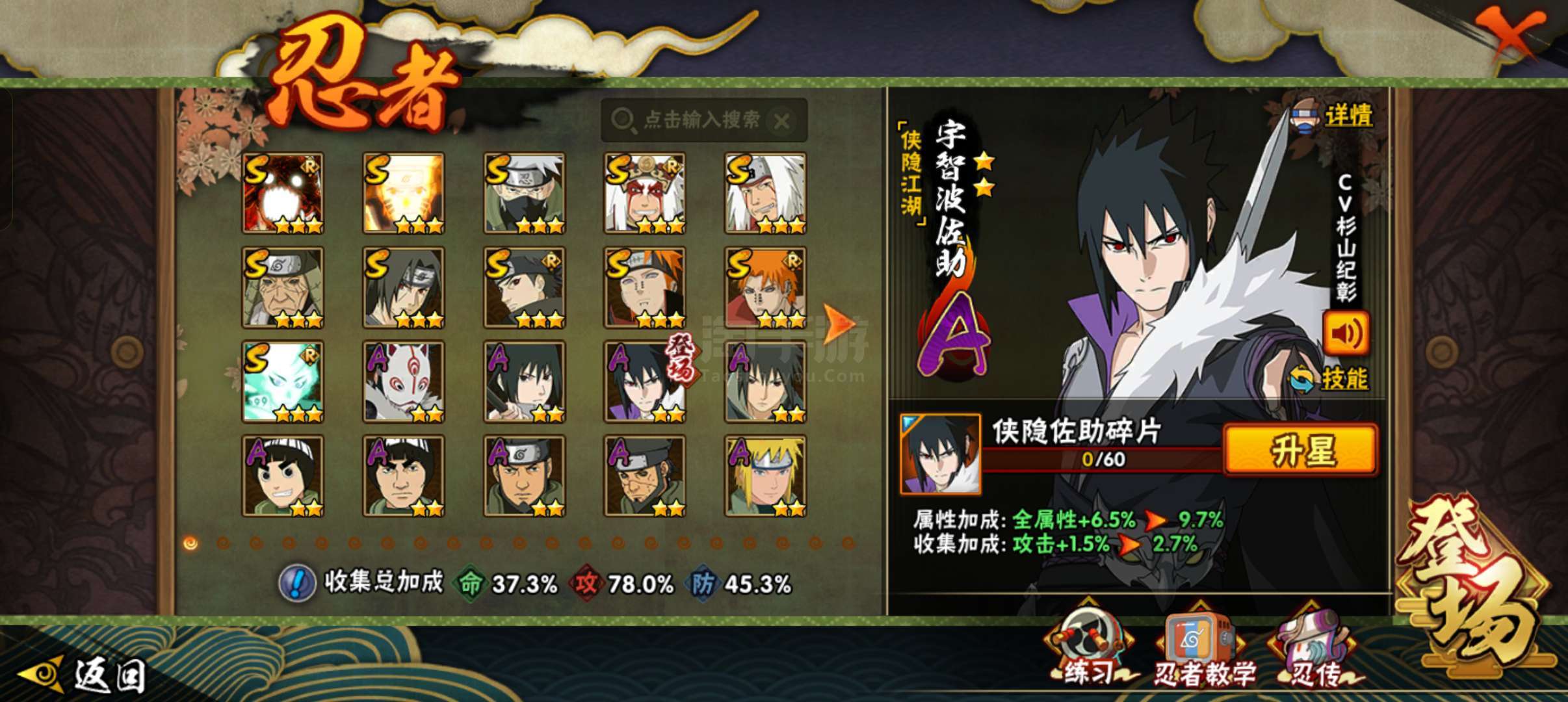 忍法帖超哥,须佐止水,舍人,六尾鸣人,198A忍9个,如侠隐佐助,侠隐兜,漂泊再不斩,漂泊佩恩等