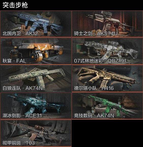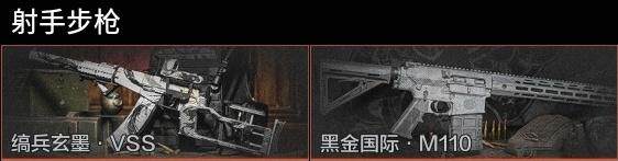 1.5M 326031科恩币 寒牙手刺,盘牙·彻甲短刃,缟兵玄墨·VSS,彻甲铜斑·T03,07式林地迷彩·QBZ191,湖冰倒影·ACE31,无畏·USAS12,骑士之剑·AKS74U