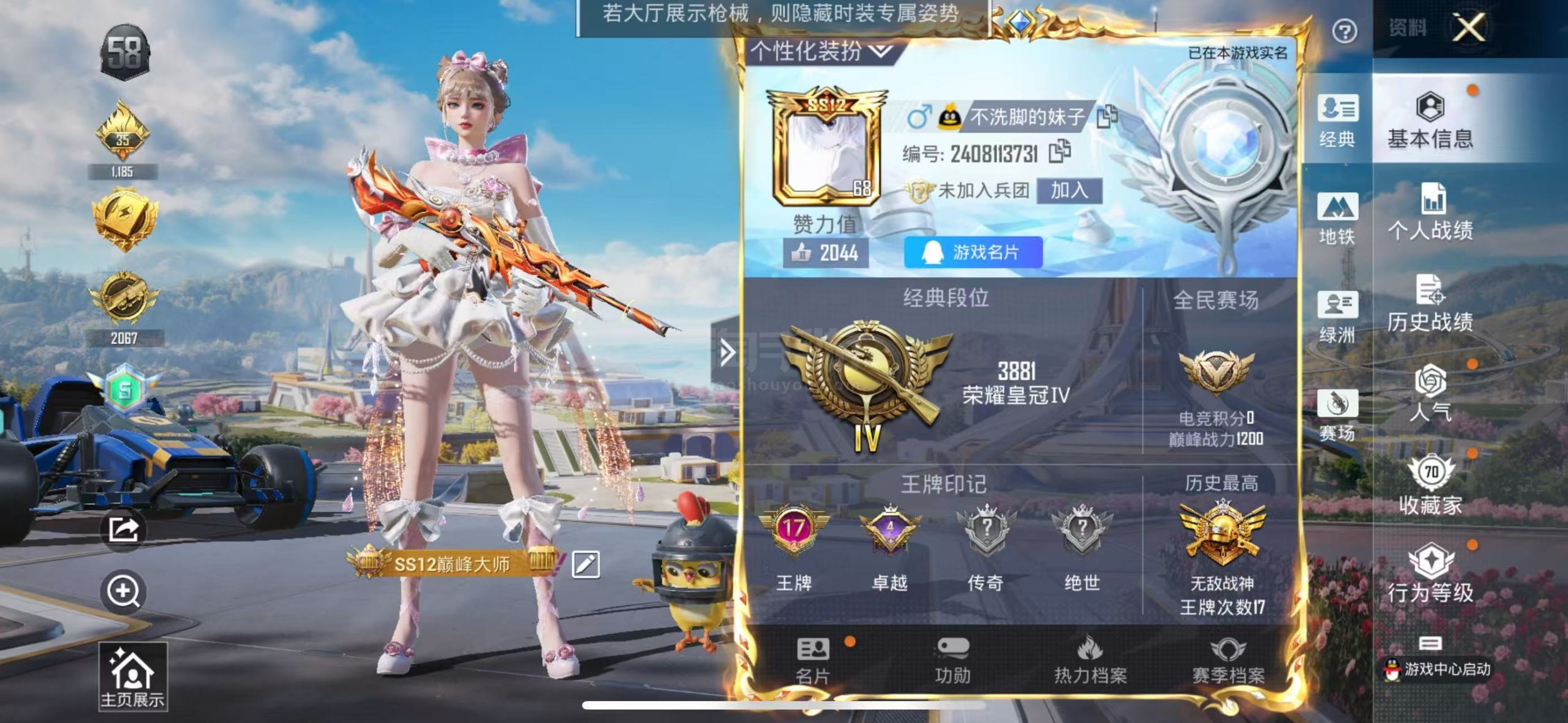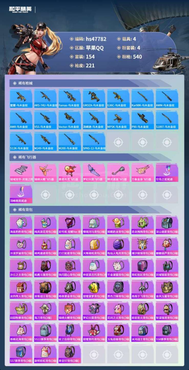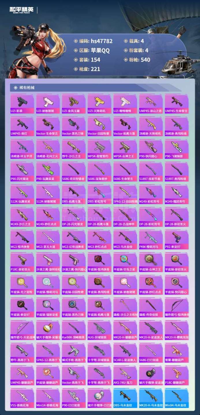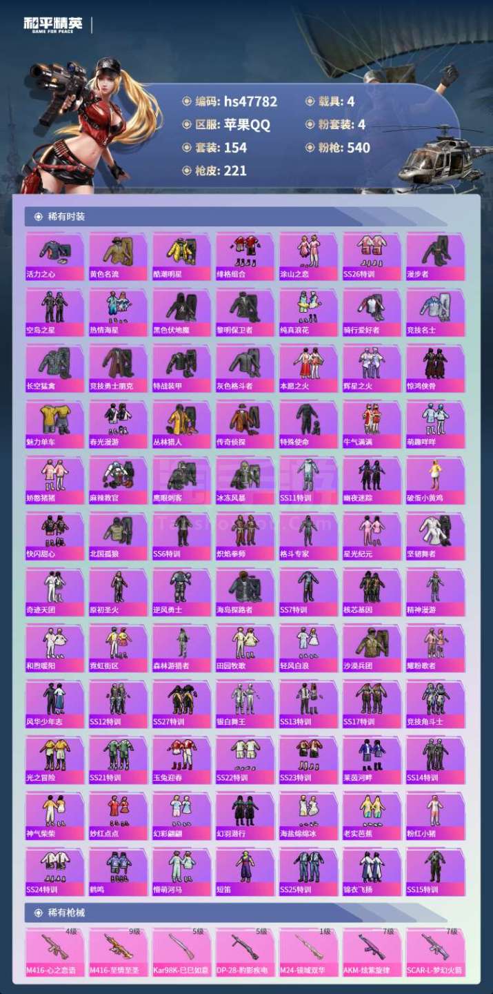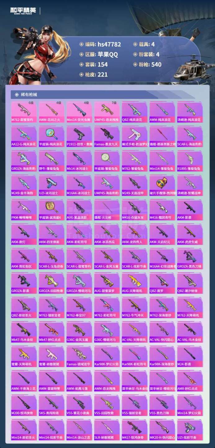 hs47782 苹果手Q-17王牌印记-有战神框-4粉装-11特效枪-4载具-80312热力值-15