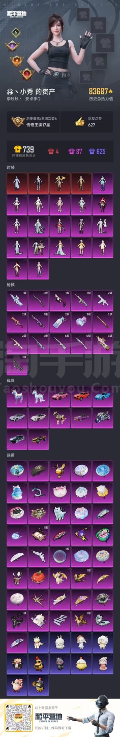 hs47789 安卓手Q-6王牌印记-4红装-18粉装-16特效枪-12载具-83727热力值-12