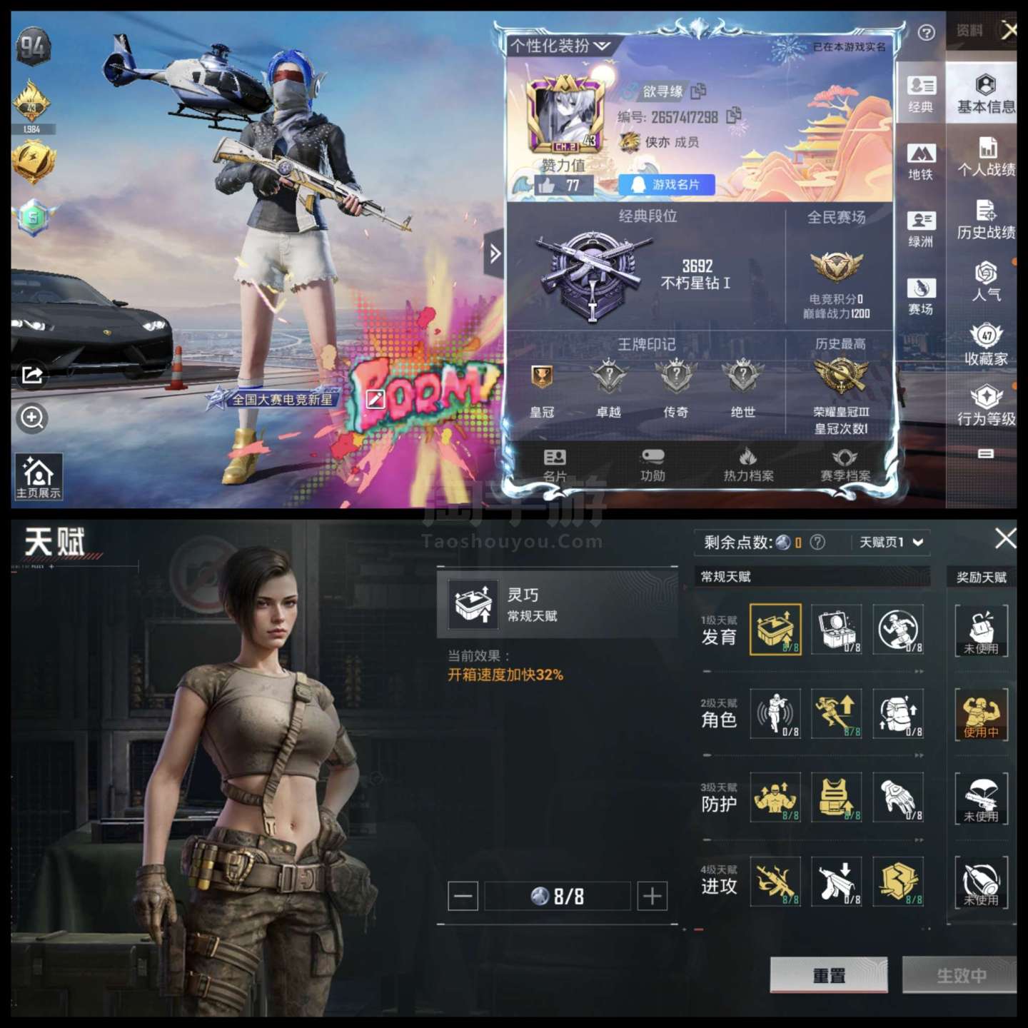 和平精英【安卓QQ】【金鞋男神号】、四套粉装火箭少女、洛天依、都市猎人、暗影哥特、【兰博基尼车皮】、全套猫包满级地铁天赋