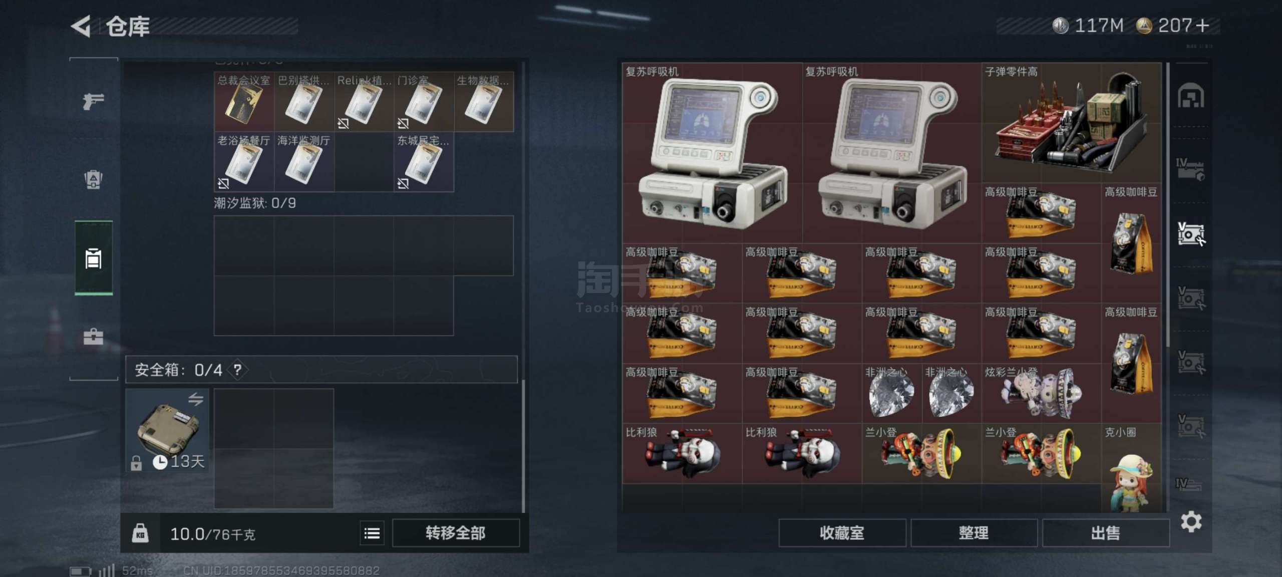 269m仓库 117m纯币 六体八仓 两星两呼吸机13咖啡豆 81发AP 超高爆率号 可二次