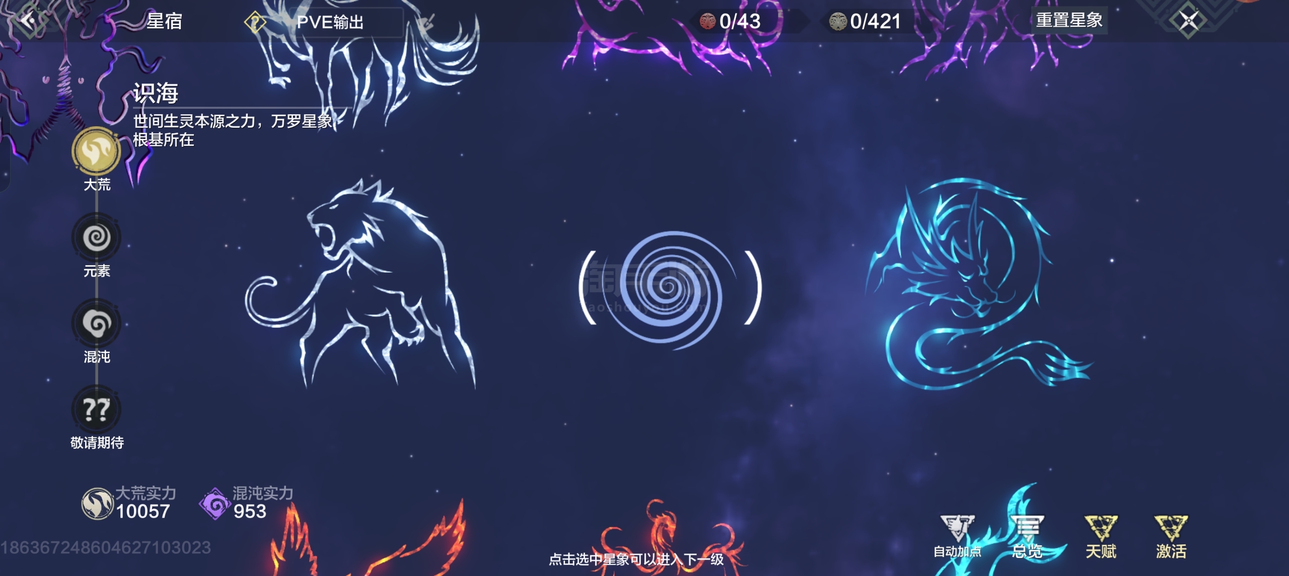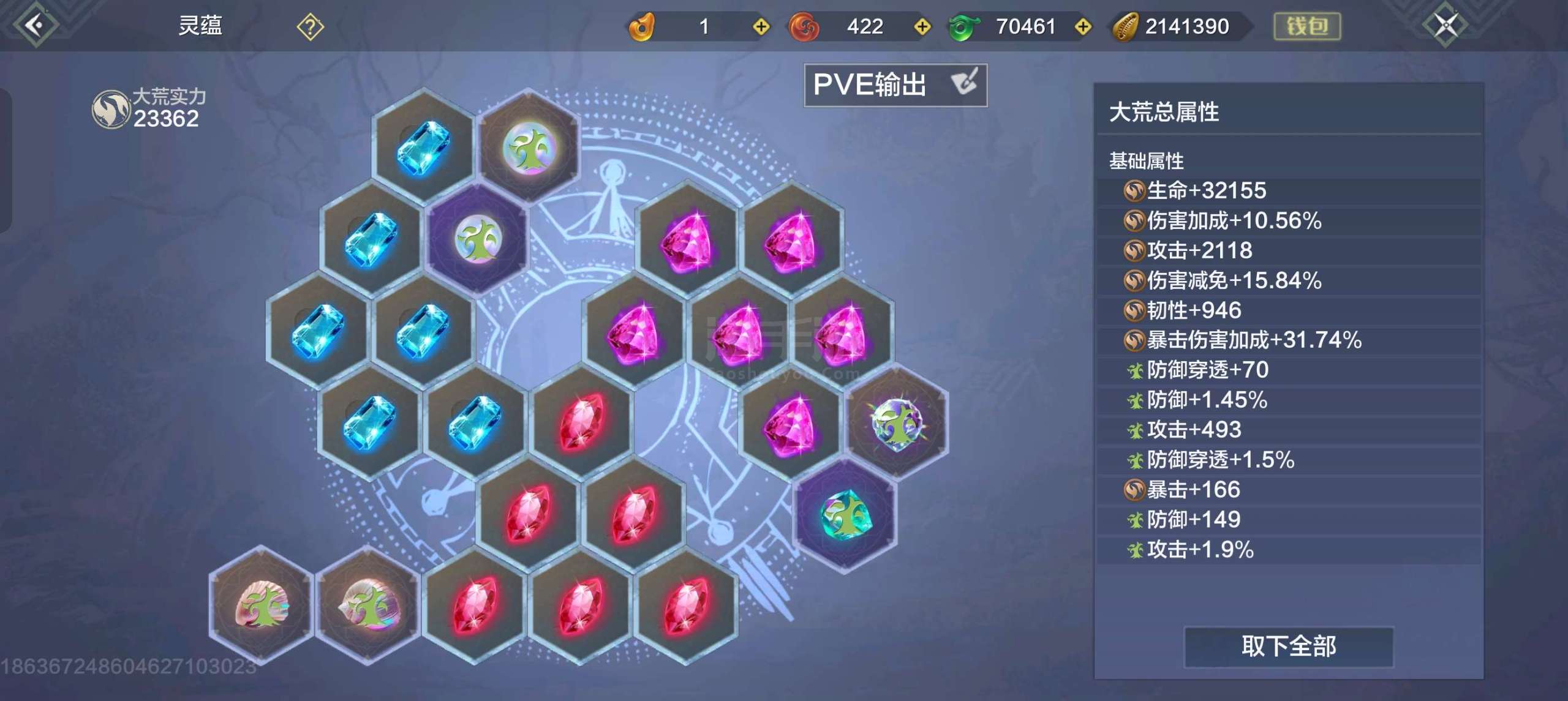 吃饱拿武器无加成大荒攻击达一万五,宠物魂技也打好的,一直在玩,资源多多,脂玉七万多,背币两三百万,也