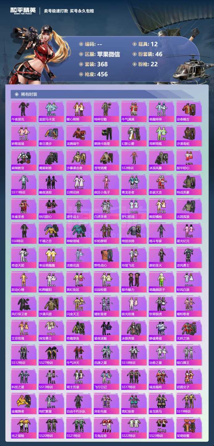 a4030/苹果v/-18王牌印记-46粉装-22特效枪-12载具-193313热力值-368套装