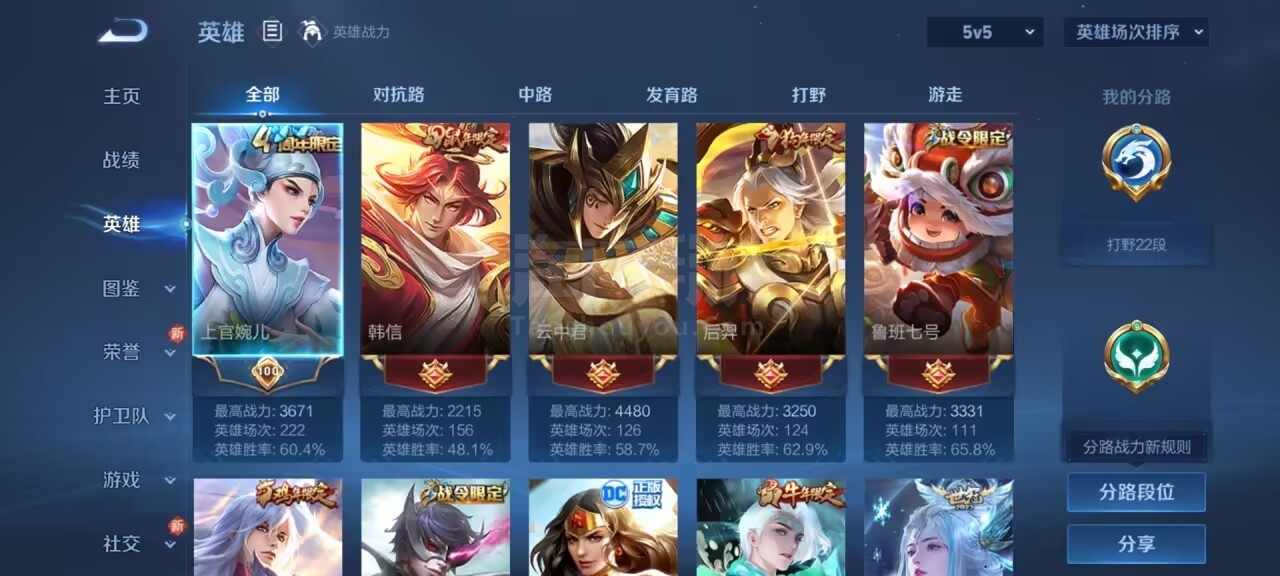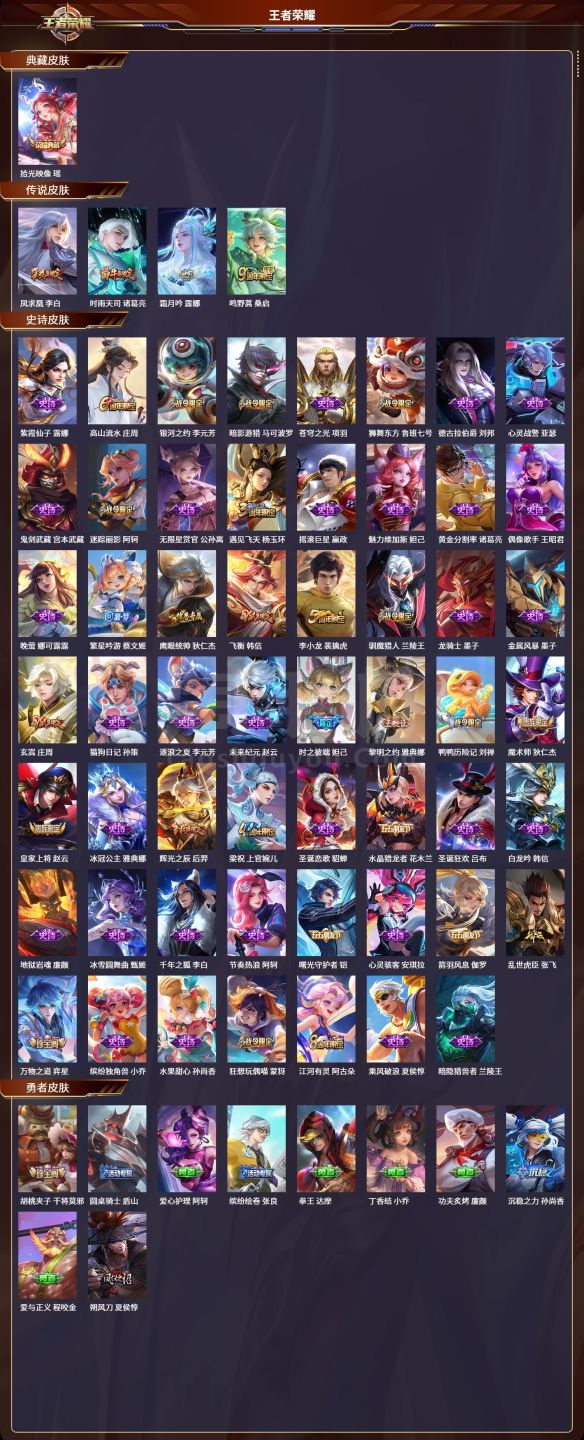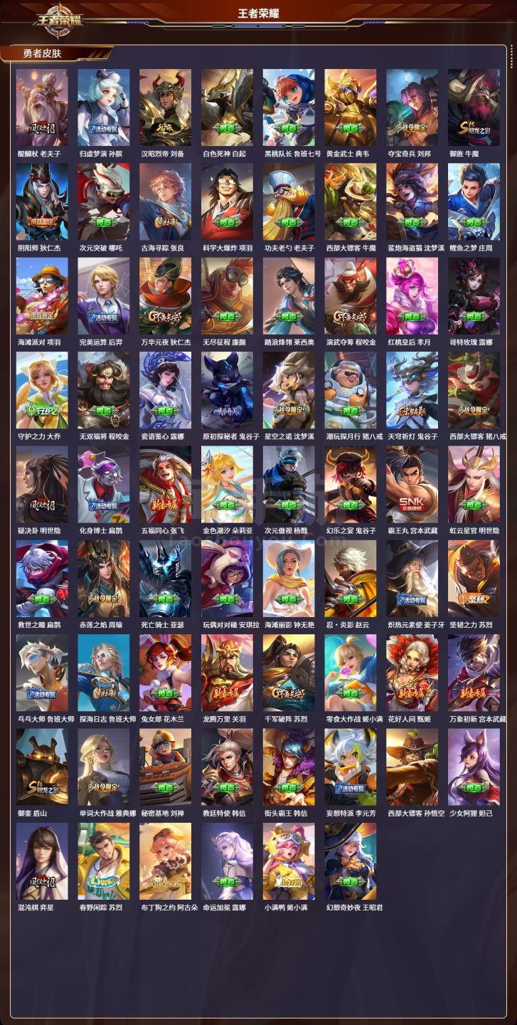 安卓QQ/永恒钻石/230皮肤/125英雄/1典藏/0珍品无双/0无双/0珍品传说/4传说/55史诗