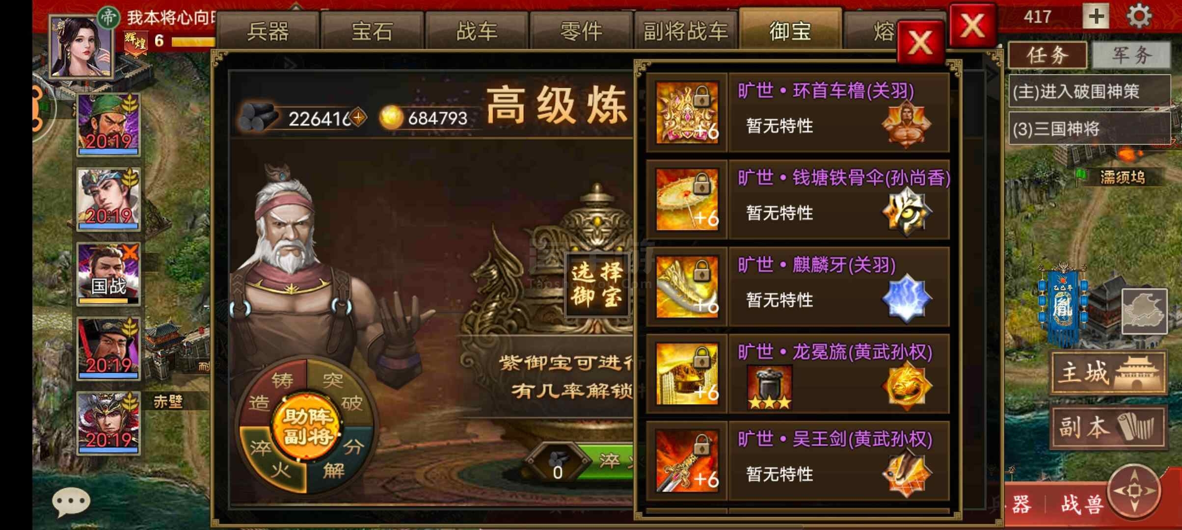 刚挂上来,手慢没,满配大帝,有 吴王剑,大帝帽子,一堆旷世御宝,关公马上二层,三星小乔,一大堆卡