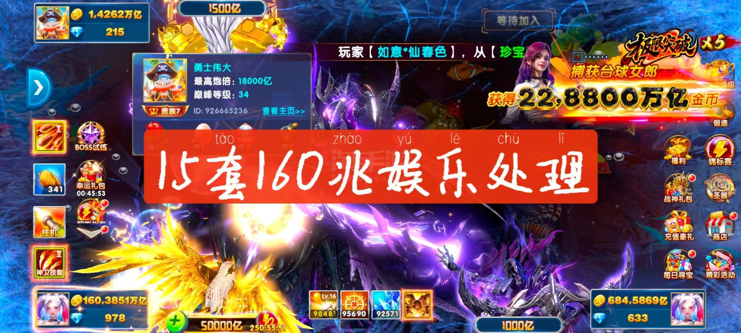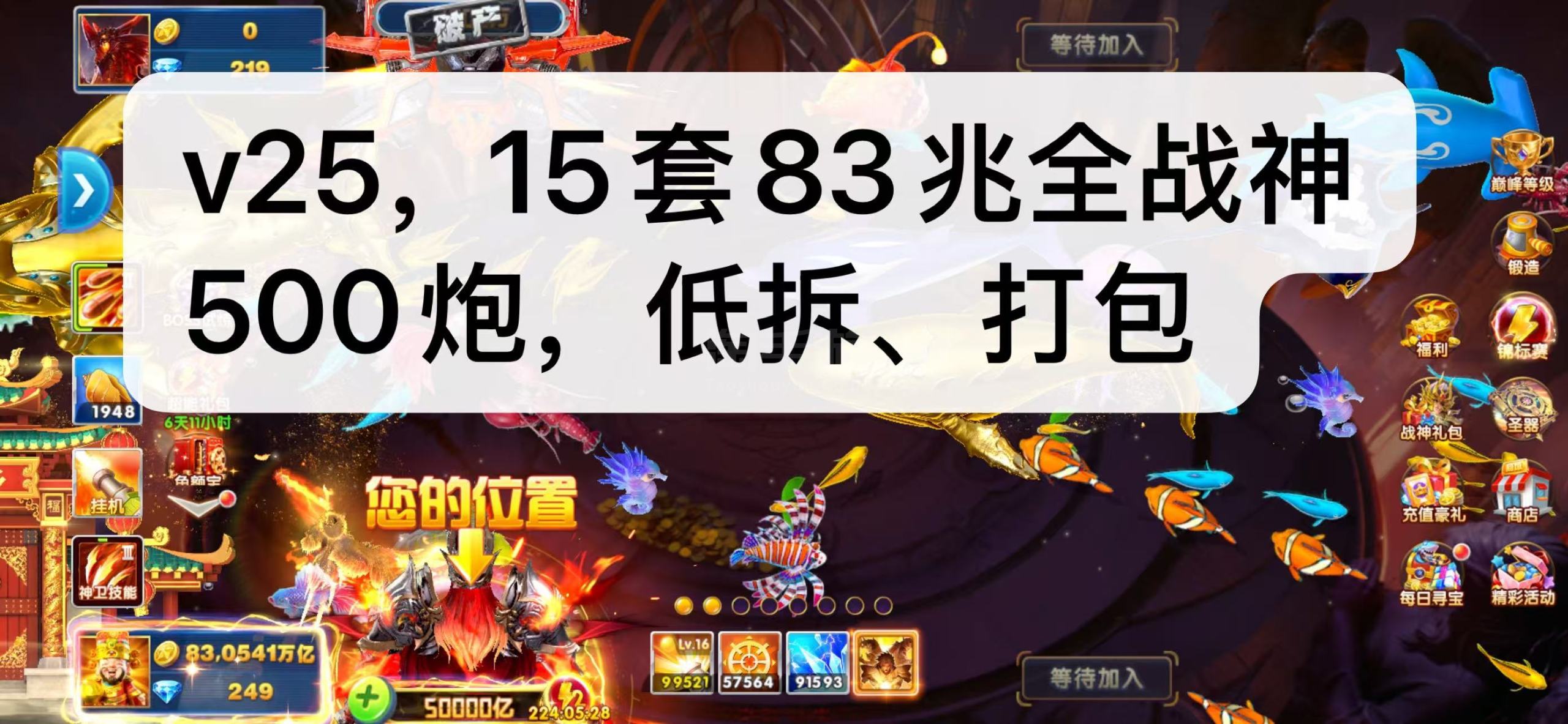 捕鱼大作战,1兆-20兆金币号出租![绿圆]官服实卡[绿圆]刀手、圣斗士