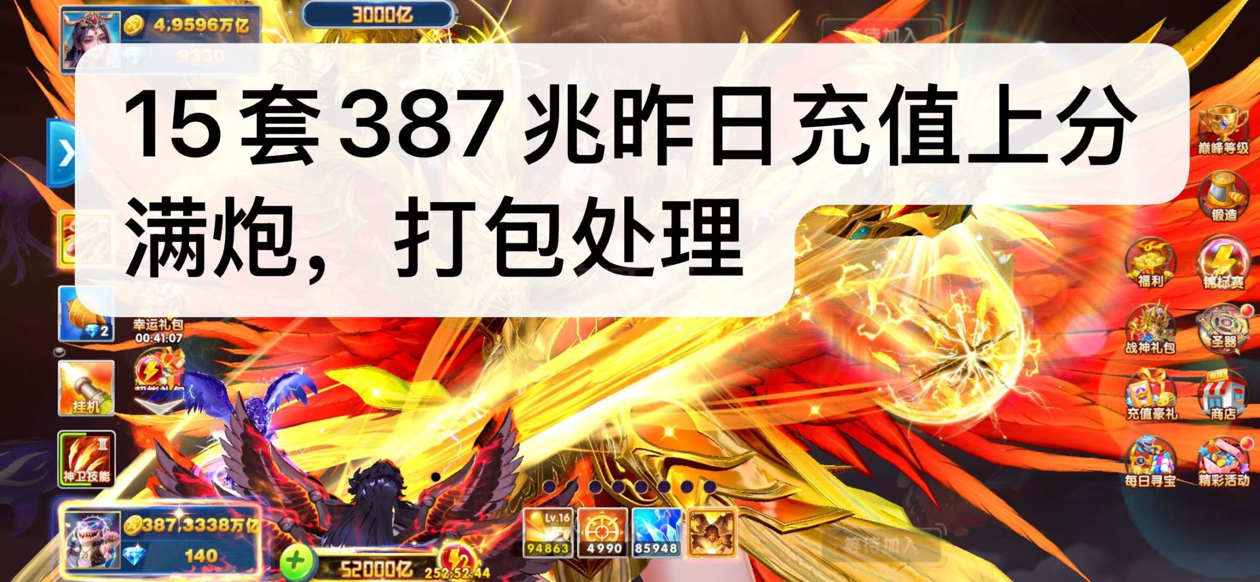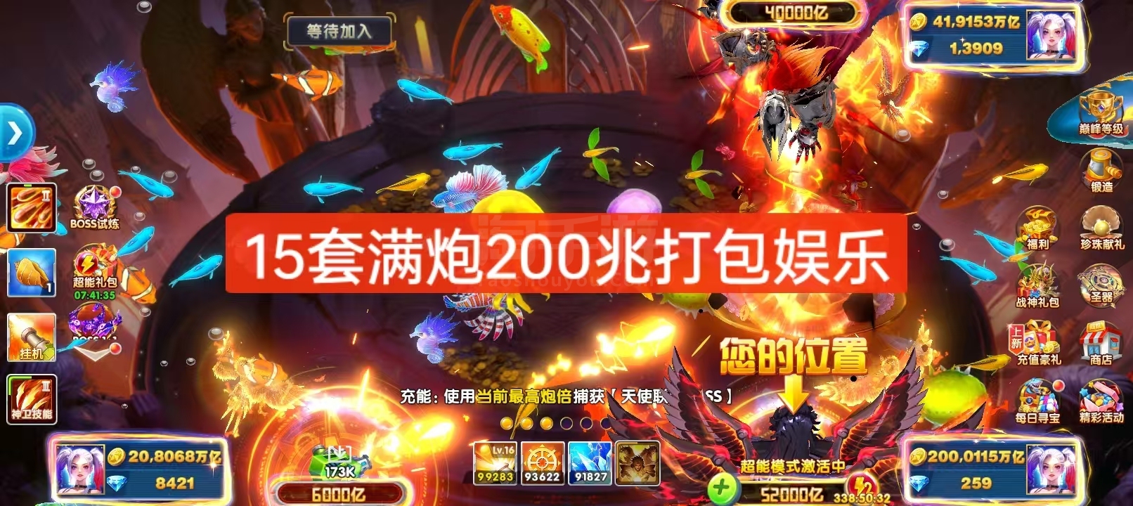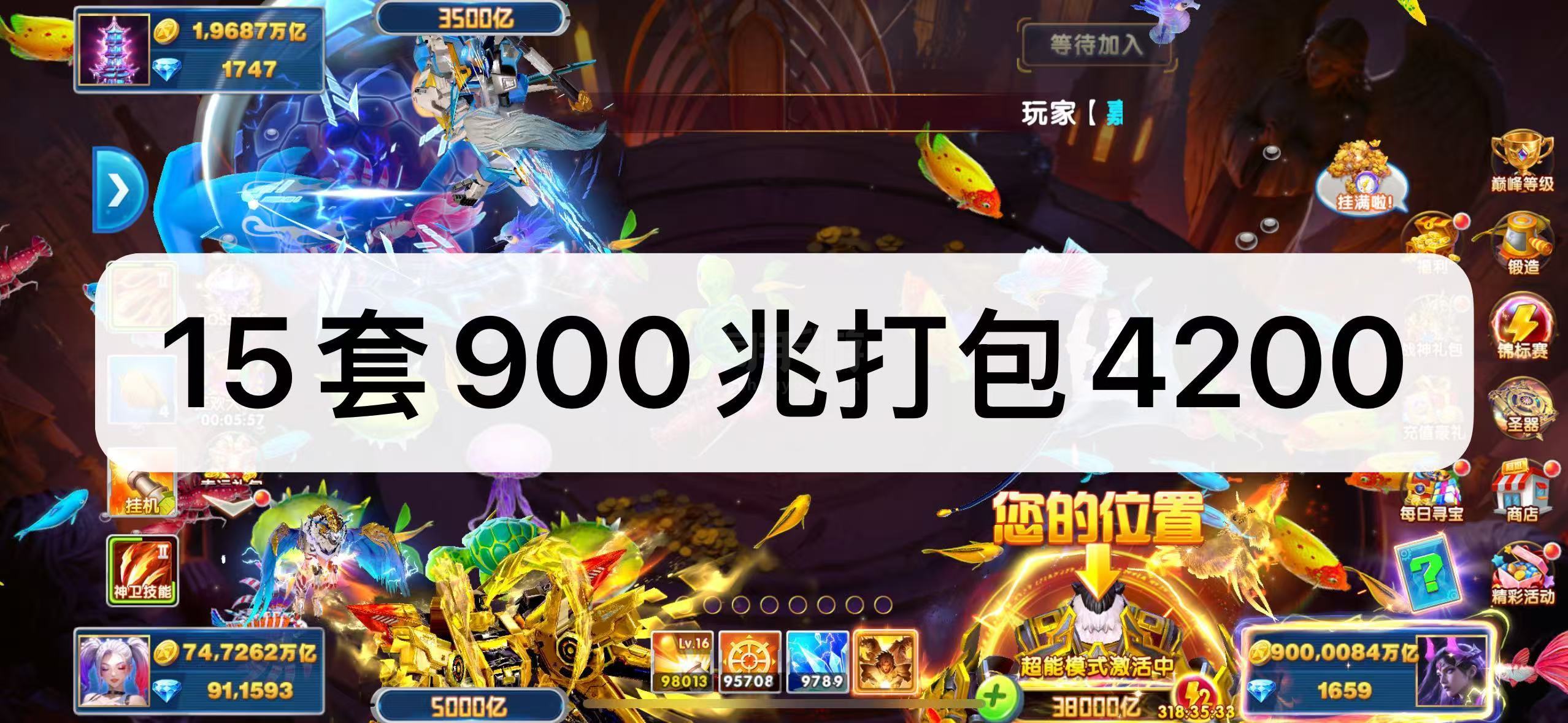 捕鱼大作战,1兆-20兆金币号出租!
