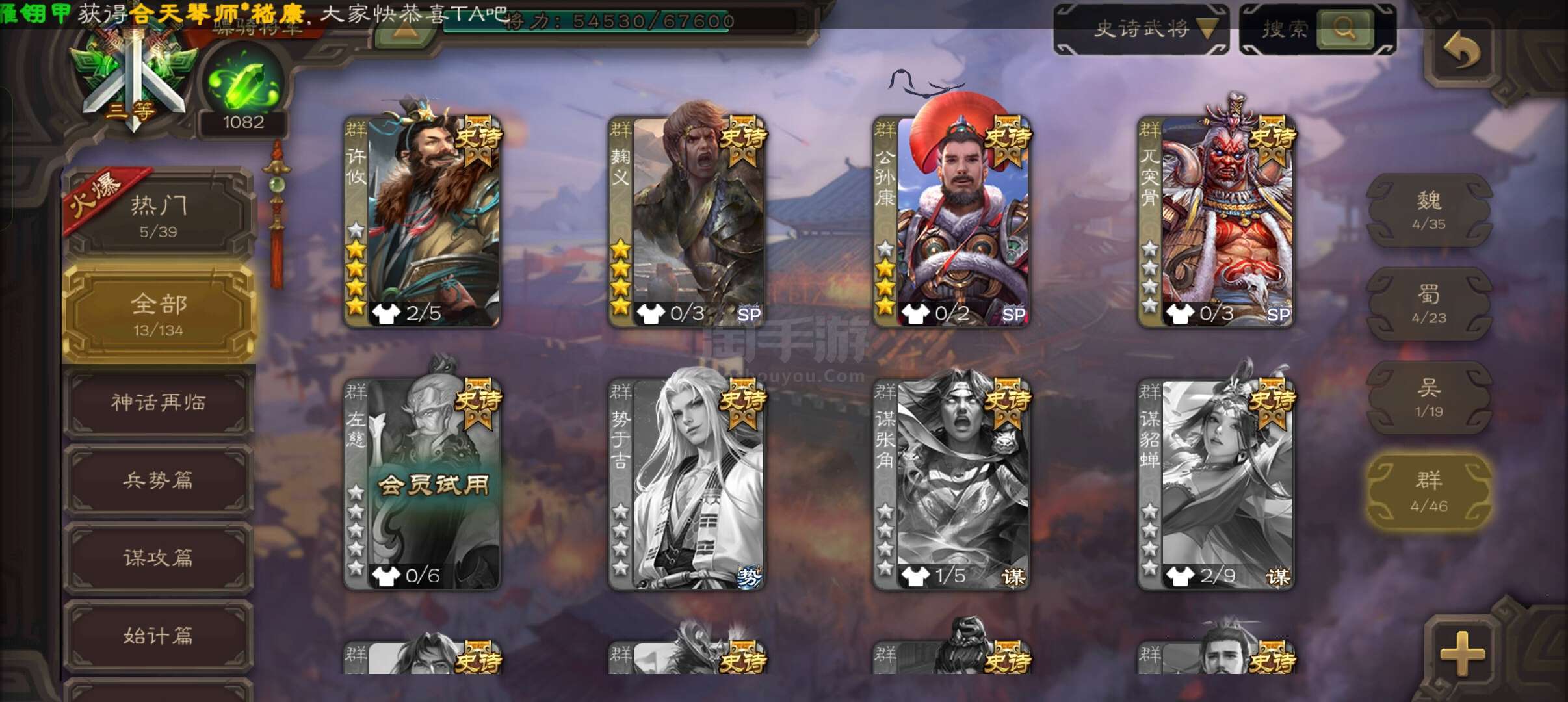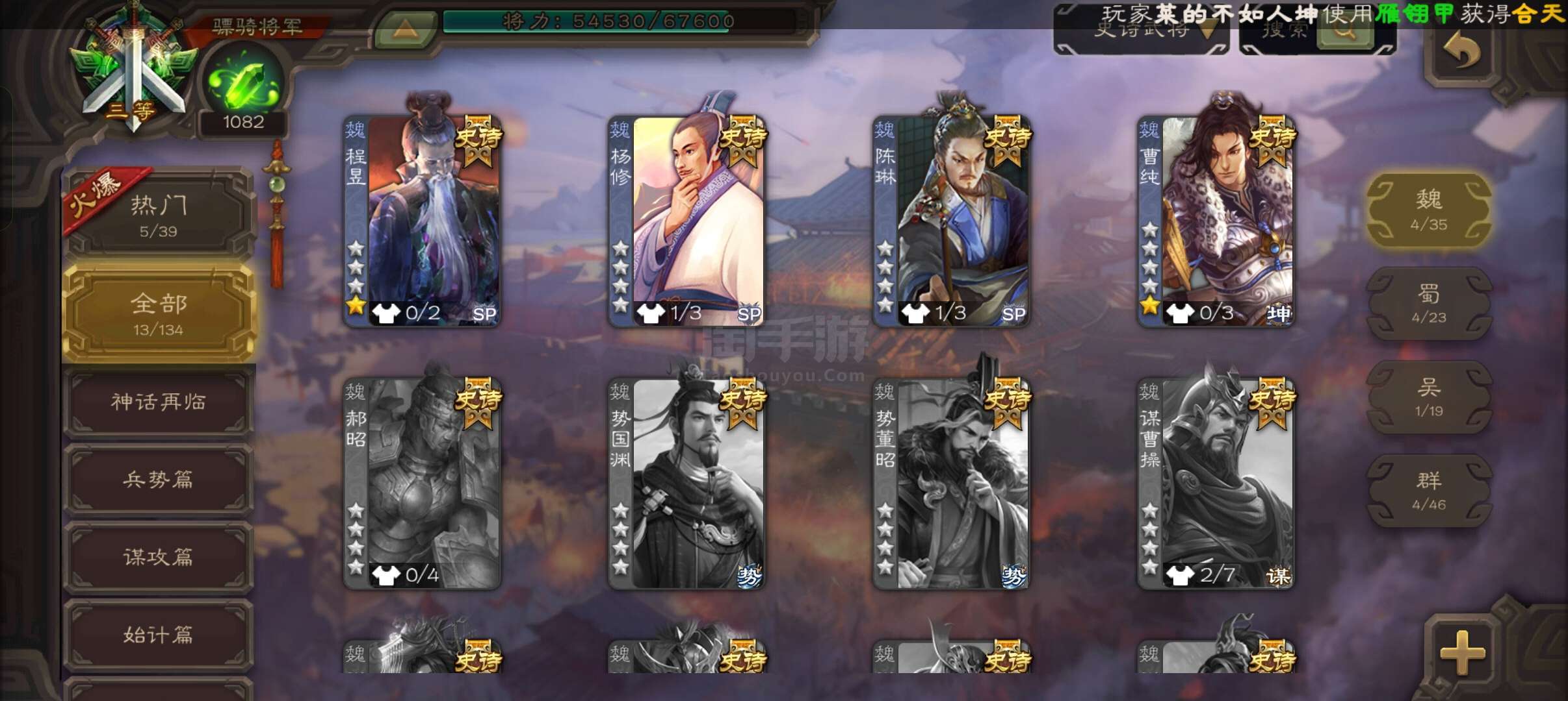 史诗武将数量: