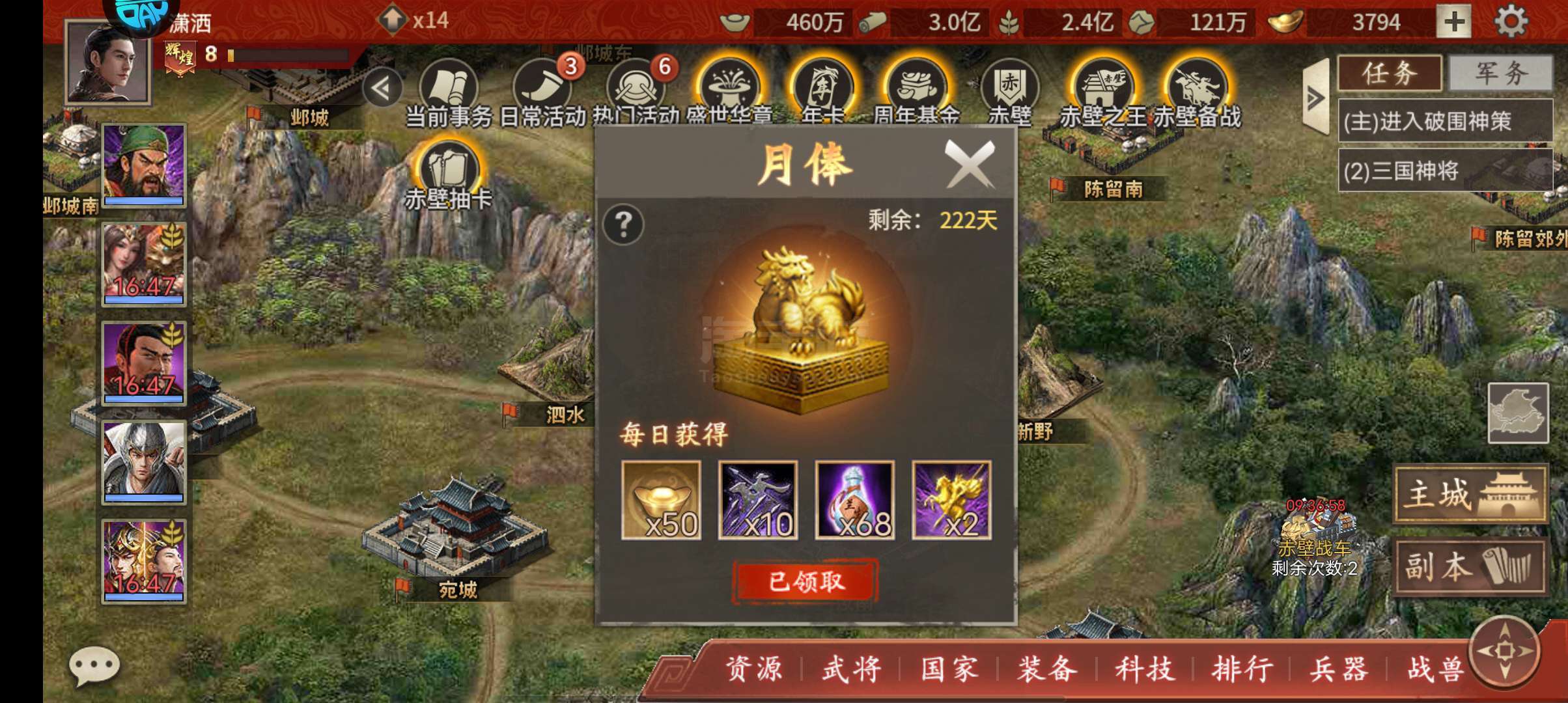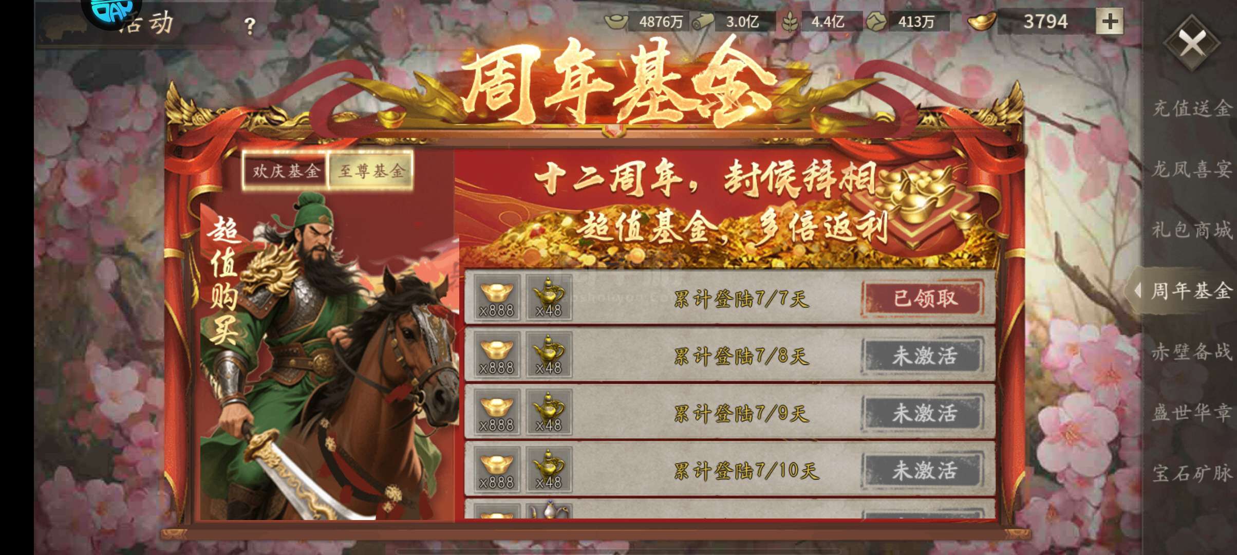 攻城掠地【安卓果盘】新区霸区35.5万5.3层关羽,5档年卡,新基金都开