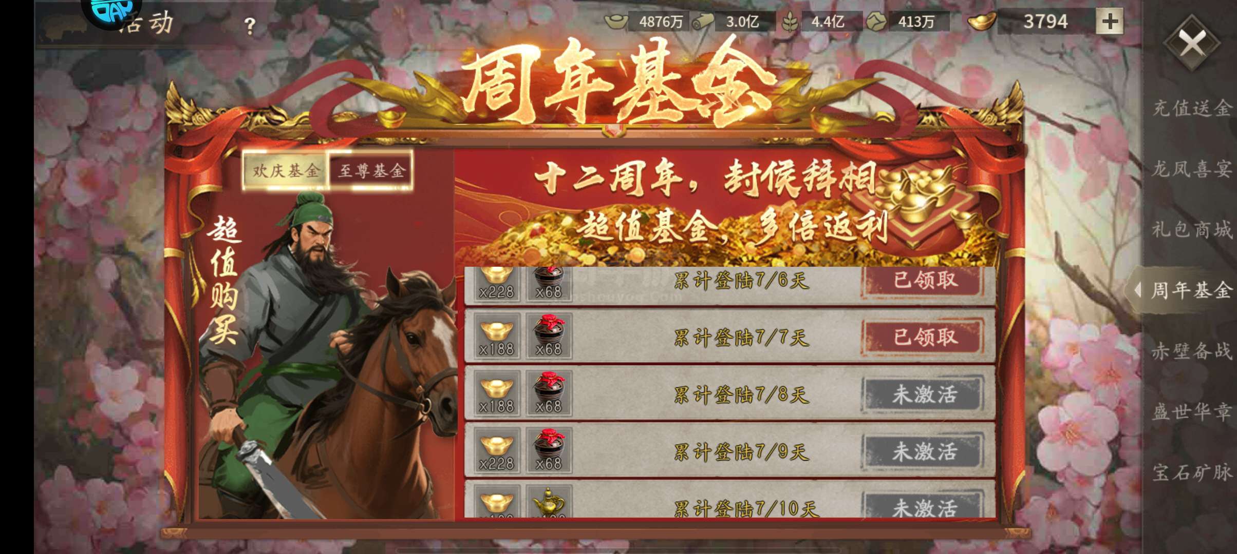 尚方宝剑,红颜弓,刚开128基金,648基金,5档年卡,6主城皮肤,35.5万关羽,200多天基金,