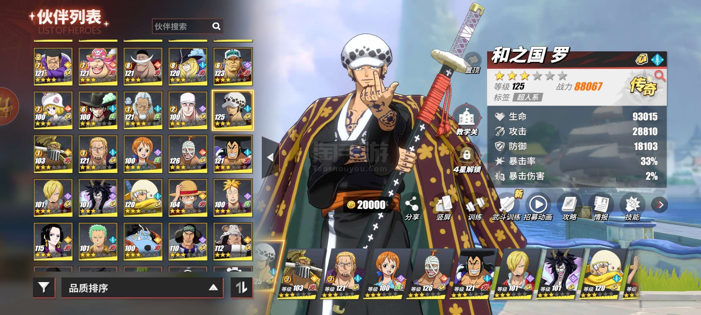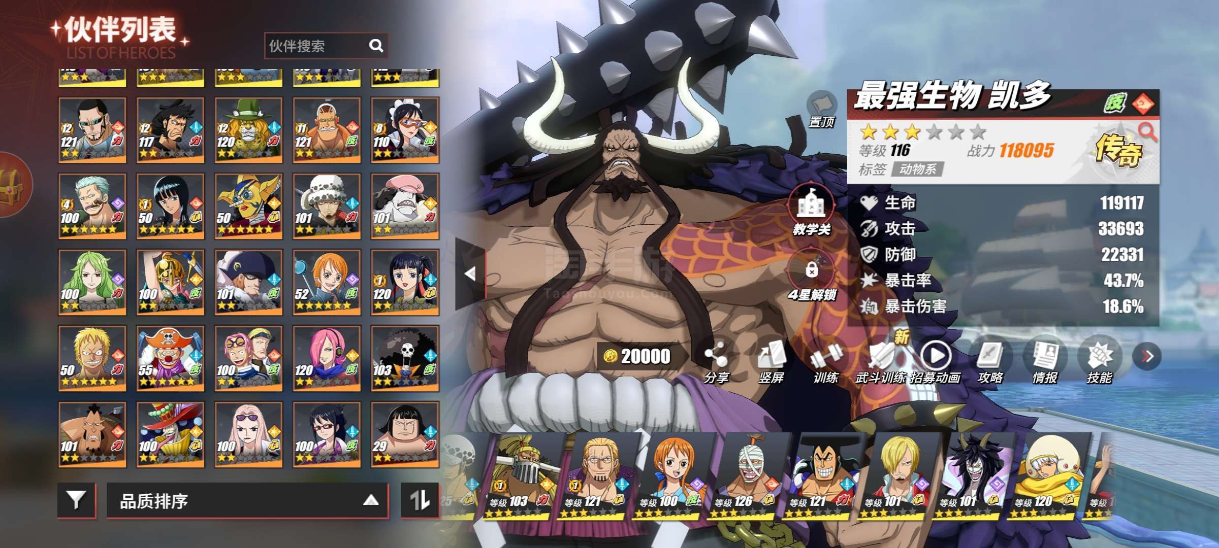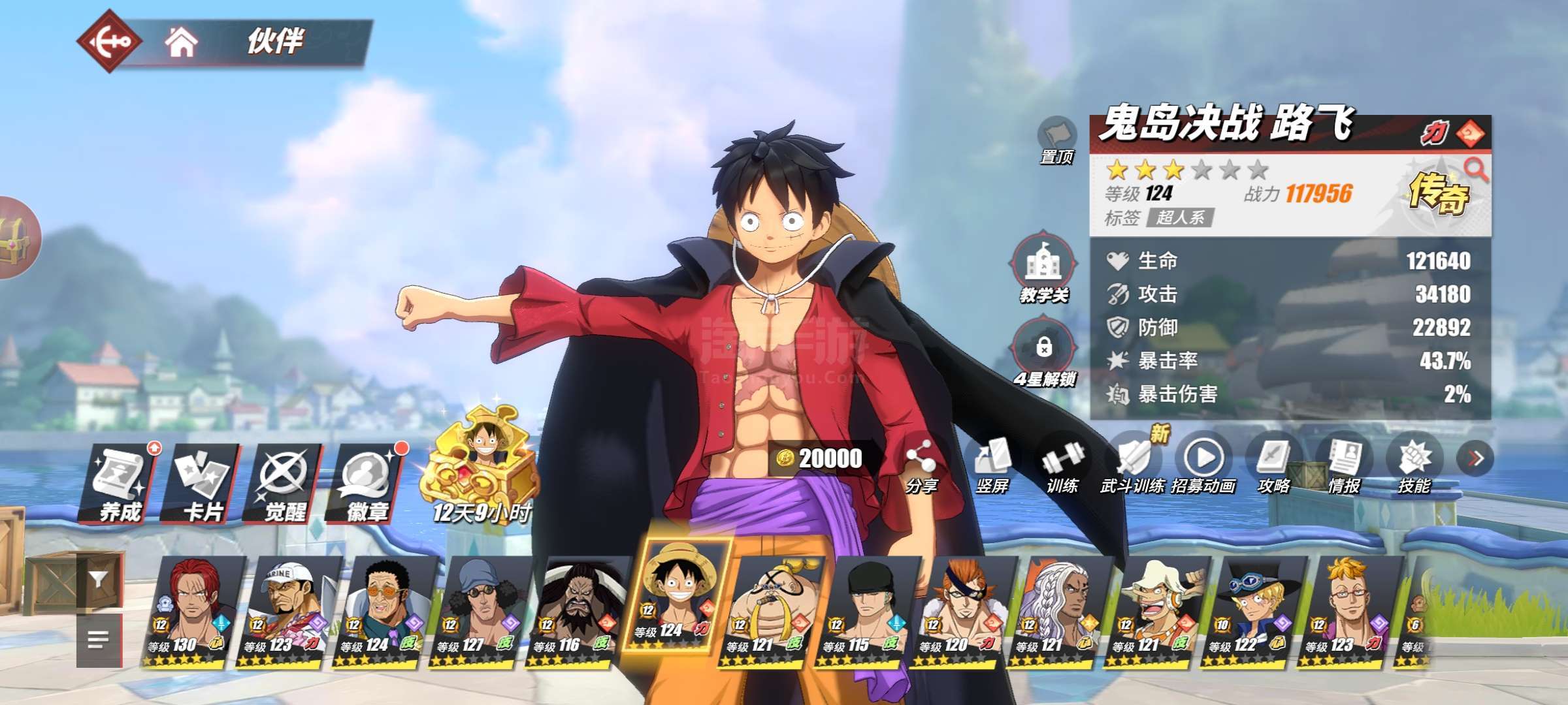 航海王热血航线【安卓小米】780w40传奇单强者青年雷利,鬼路,最强红发,和之国罗,凯多,烬等竞技场专属永久新世界鹰眼,下一个