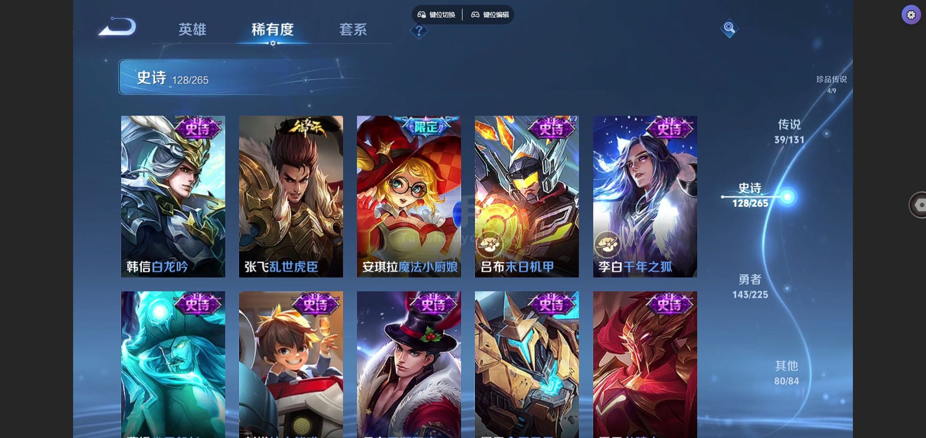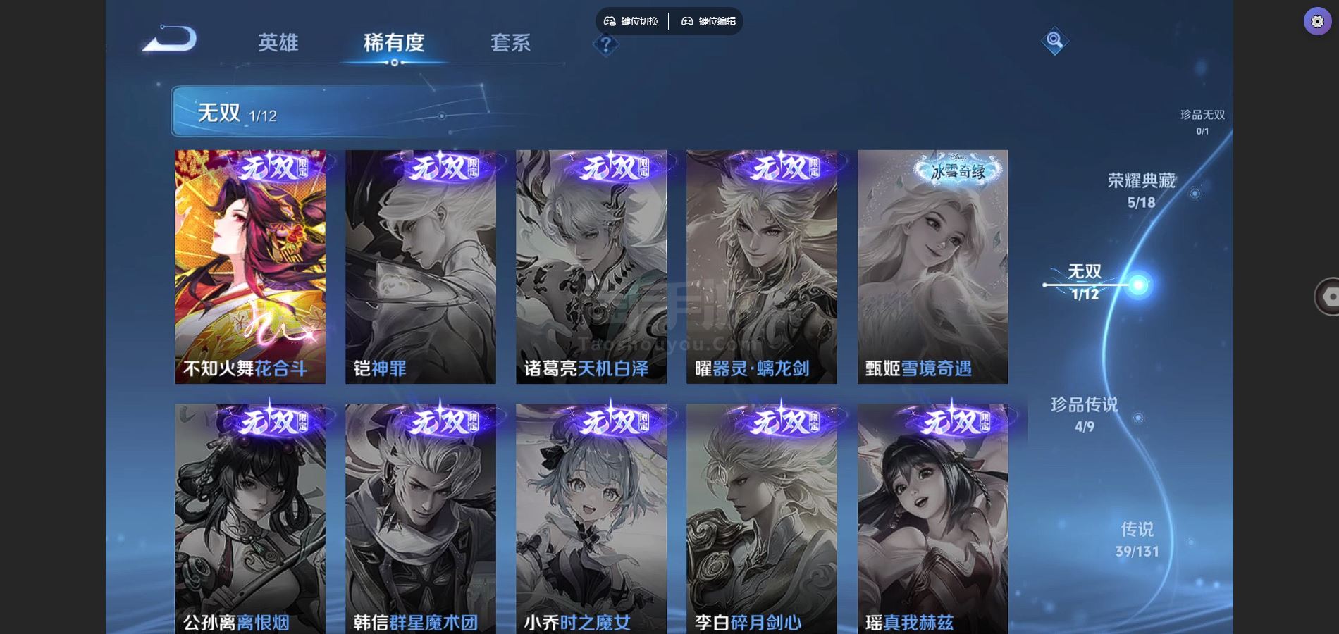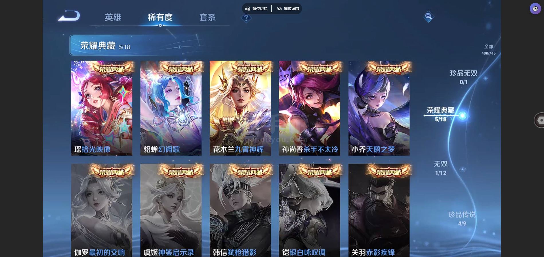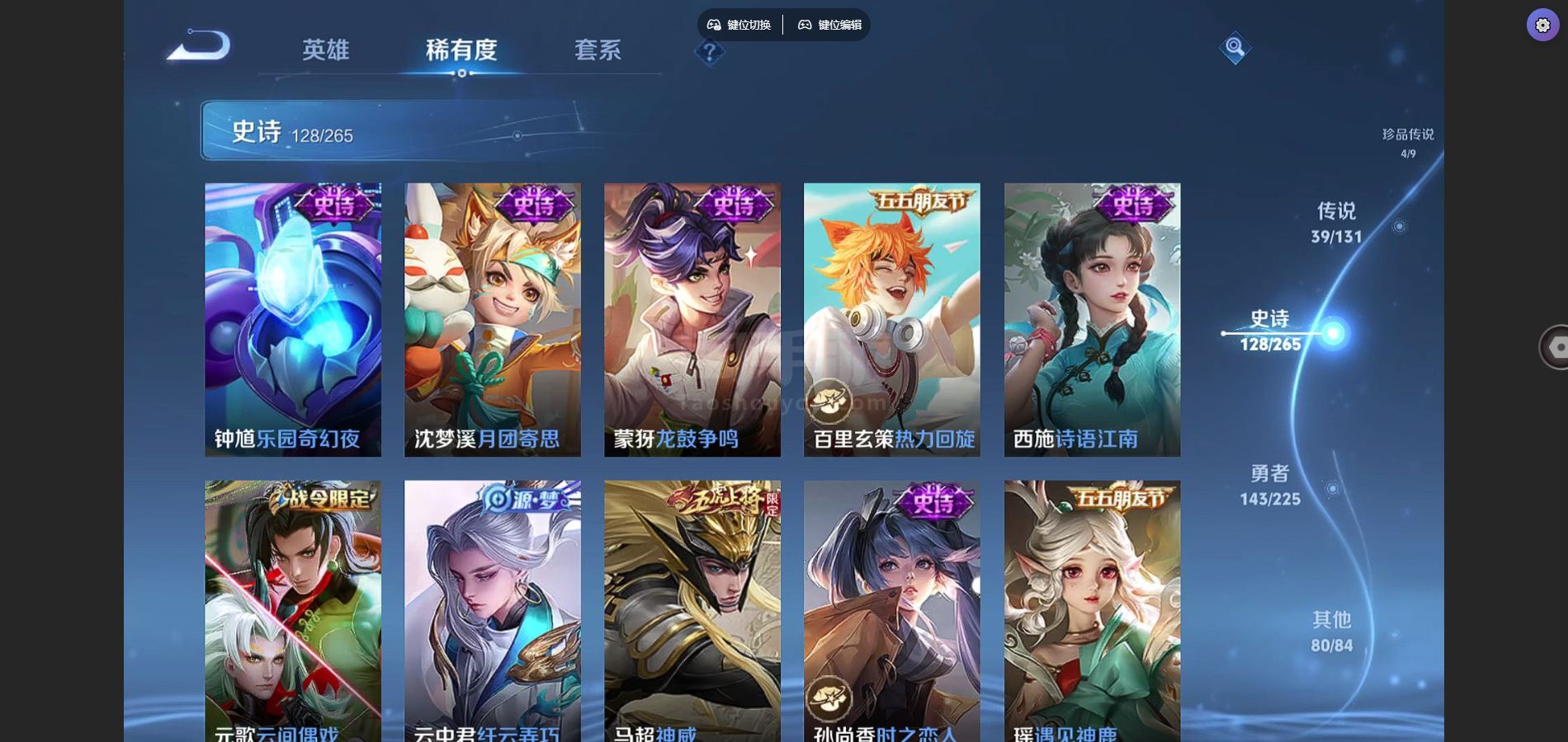 V9-400皮肤5典藏1无双4珍品传说39传说 发育40段 金标云中君 3星传说 幽冥之眼 未来机甲