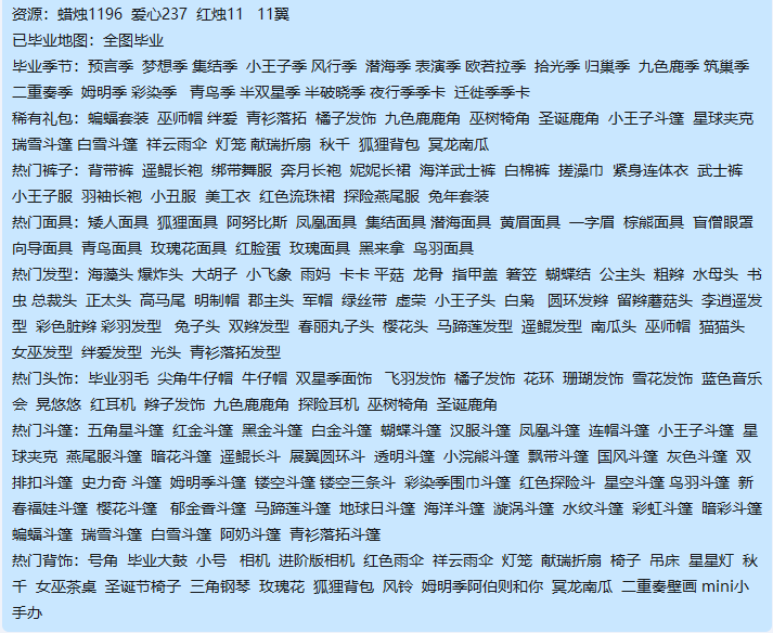 毕业季节:预言季 梦想季 集结季 小王子季 风行季 潜海季 表演季 欧若拉季 拾光季 归巢季 九色鹿季 筑巢季 二重奏季 姆明季 彩染季 青鸟季 半双星季 半破晓季 夜行季季卡 迁