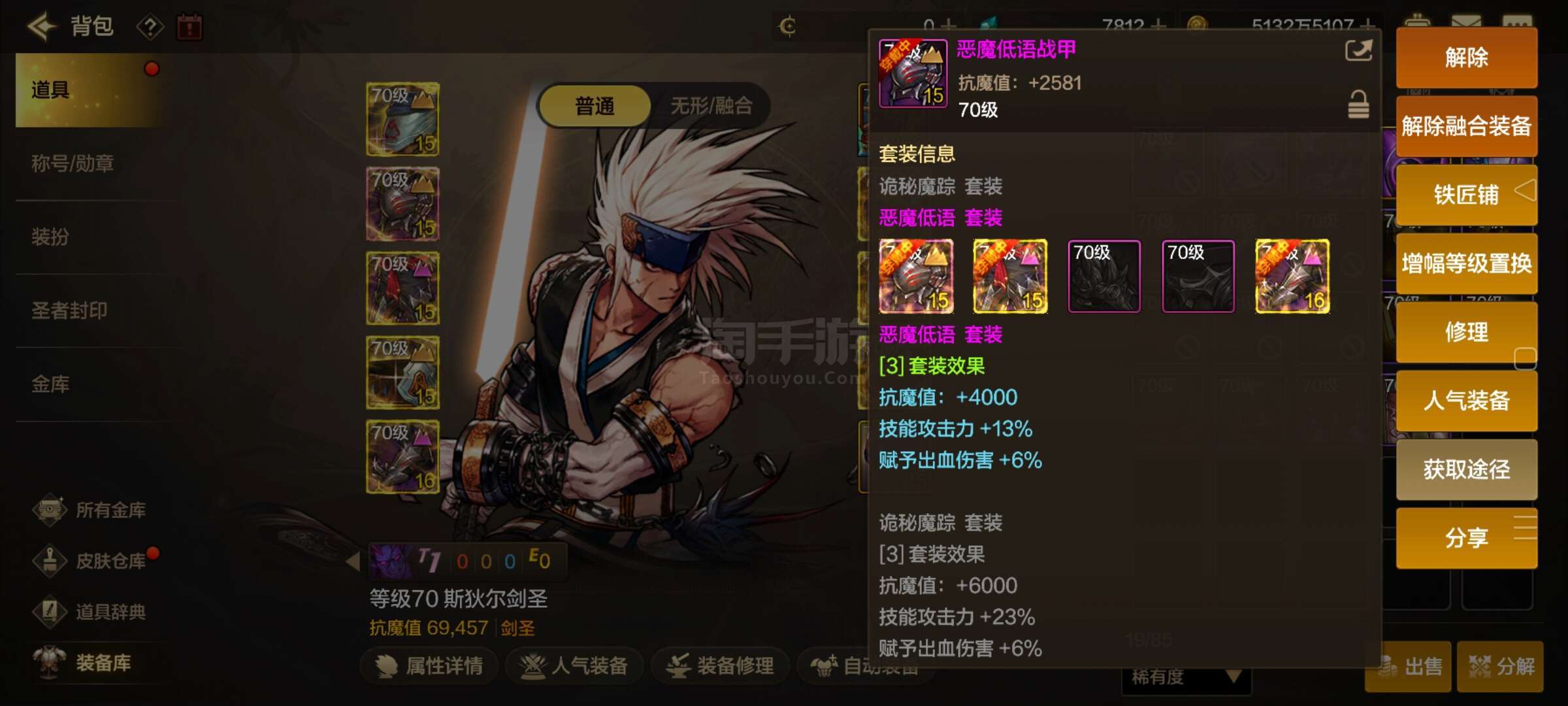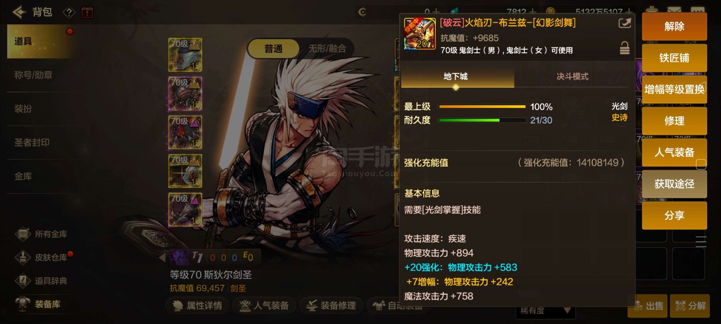 DNF手游【安卓QQ】6万9抗魔剑圣加刃影,武器加20,属强4+3,宠物伤害+8学生党看过来