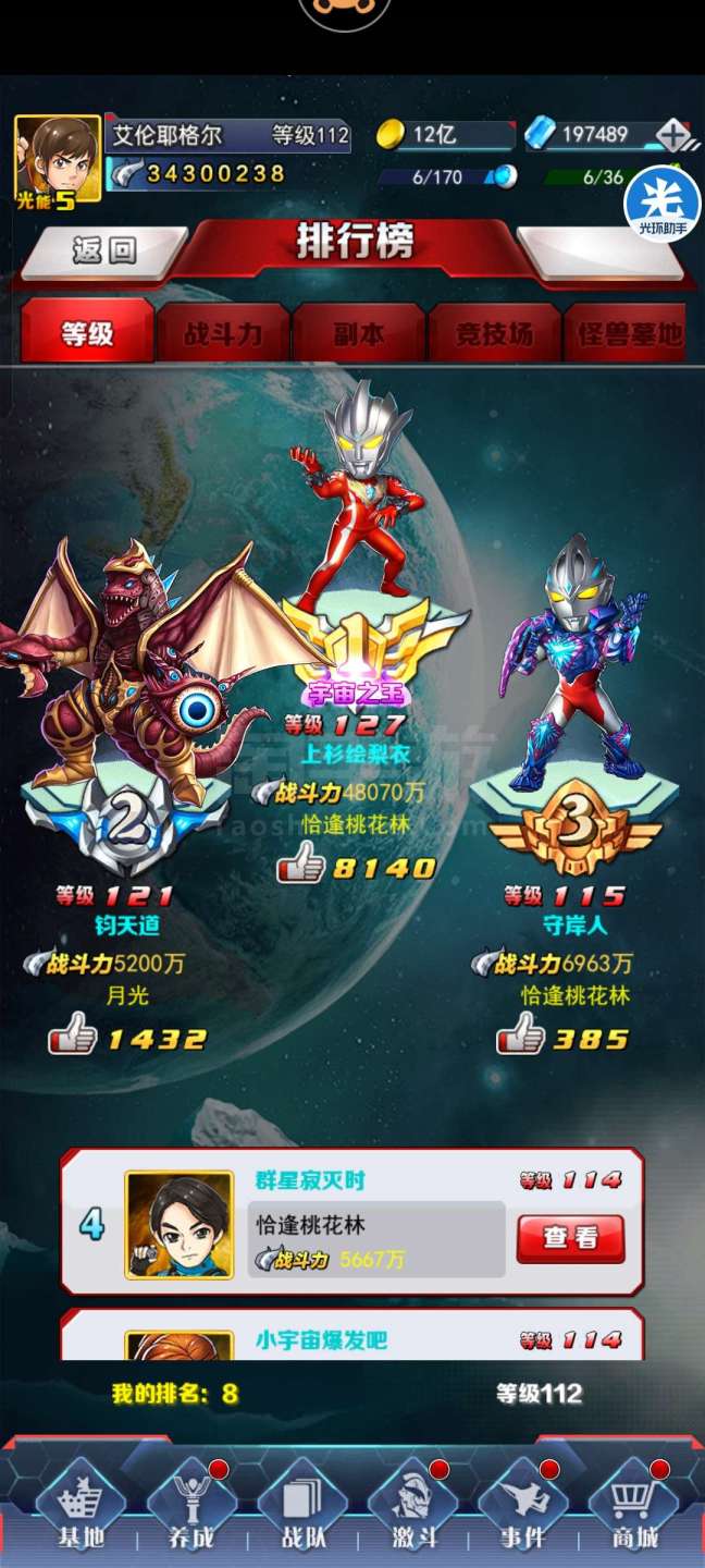 奥特曼系列OL【安卓当乐】新区20w光源双月卡有55卡劵等级前10副本没打打完可以22w洗脸成就也没做