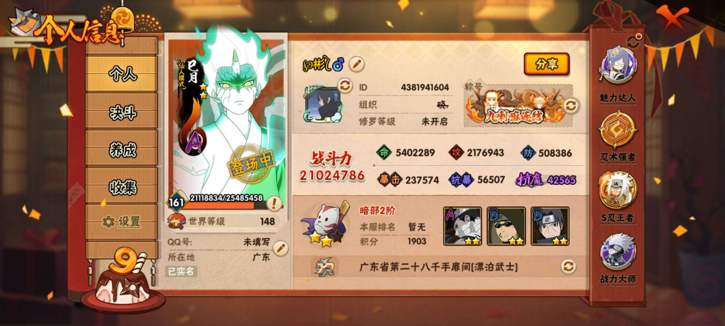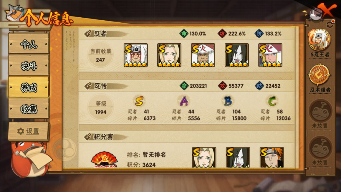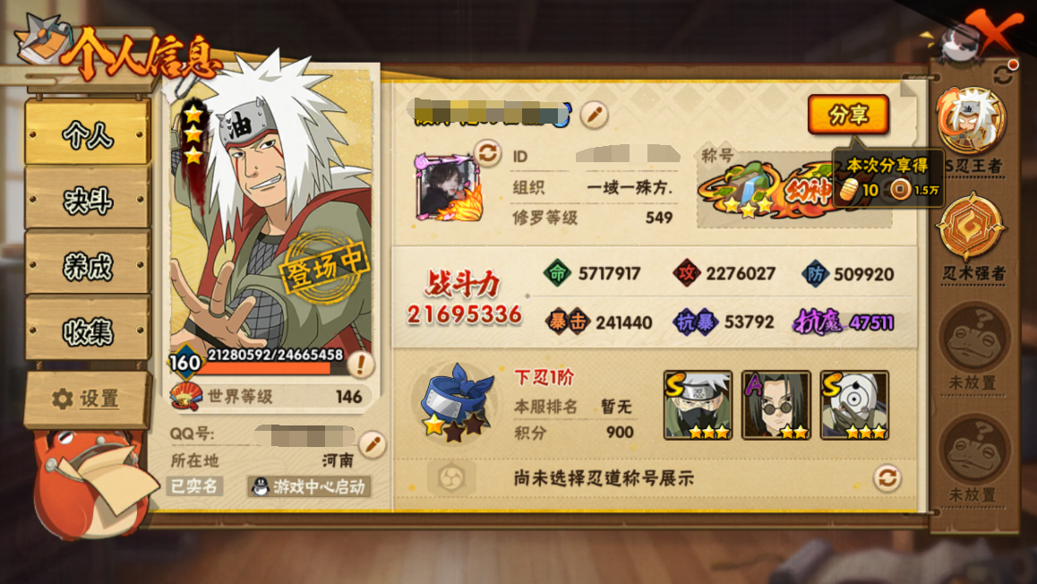火影忍者【安卓QQ】w战力白破超41S+198直购A新春鼬44A+98熊猫+90