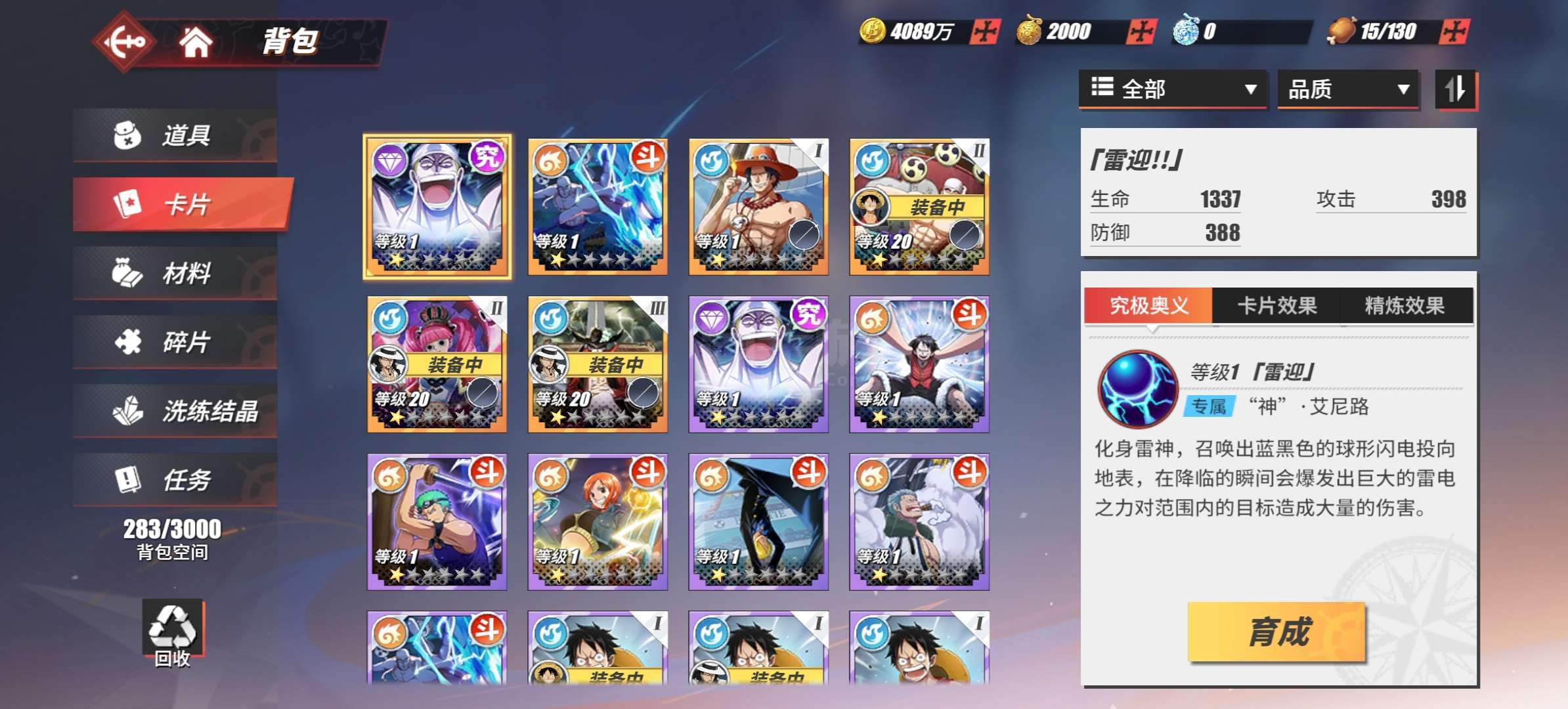 航海王热血航线【安卓官方】CP0罗布鲁兹 路奇,鬼岛决战路飞,一千金果,资源还有很多